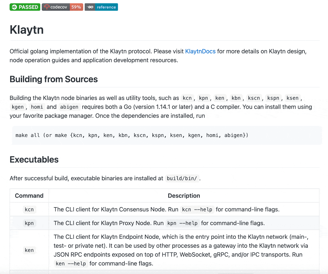 | 깃허브 | github.com/klaytn |