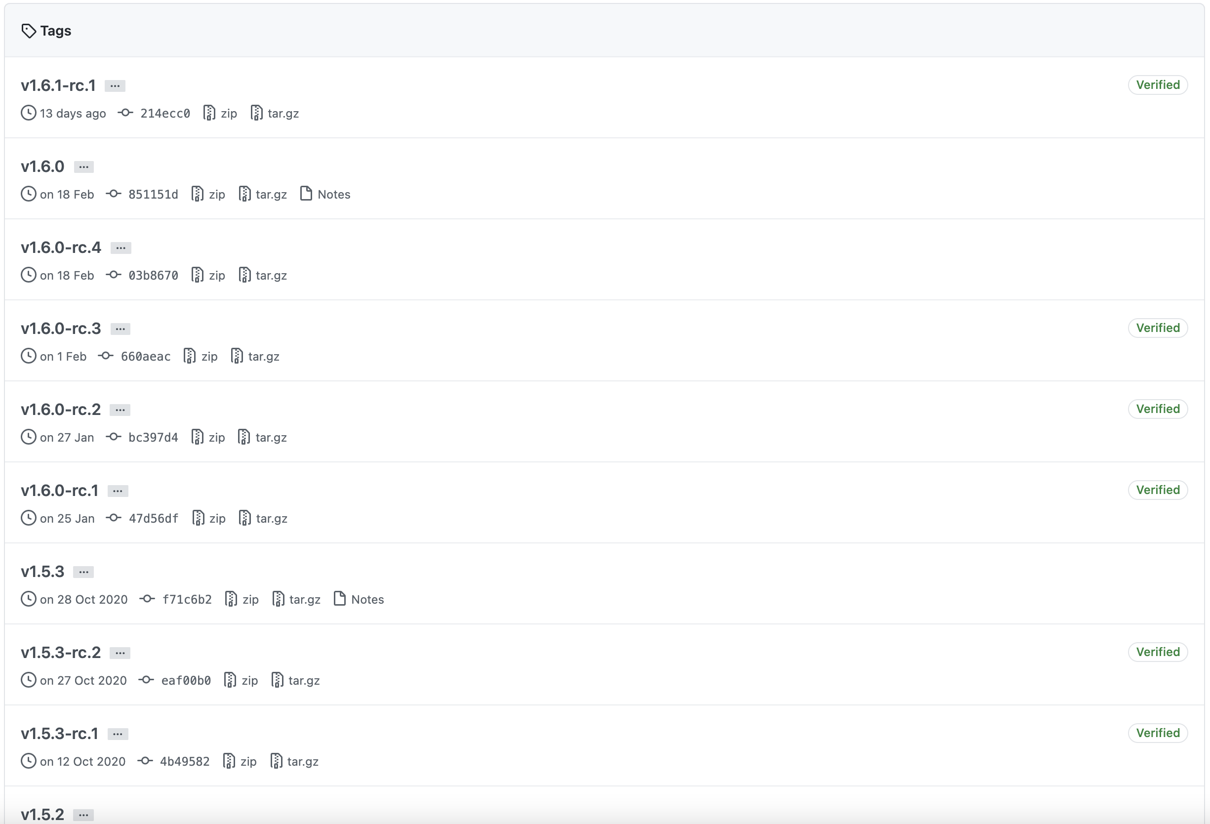 릴리즈(Release)란 유저들에게 특정 버전의 소프트웨어를 제공하는 단계입니다. 릴리즈의 내역에는 해당 릴리즈에서 반영된 내용과 소스코드가 포함되어 있습니다. 태그(Tag)란 일반적으로 우리가 이해하고 있는 것처럼 무언가 표시를 해두기 위한 기능입니다. 깃에서는 특정 커밋(Commit)을 태그하는 행위죠. 특정 커밋을 가리키는 참조라고 이해하시면 됩니다.