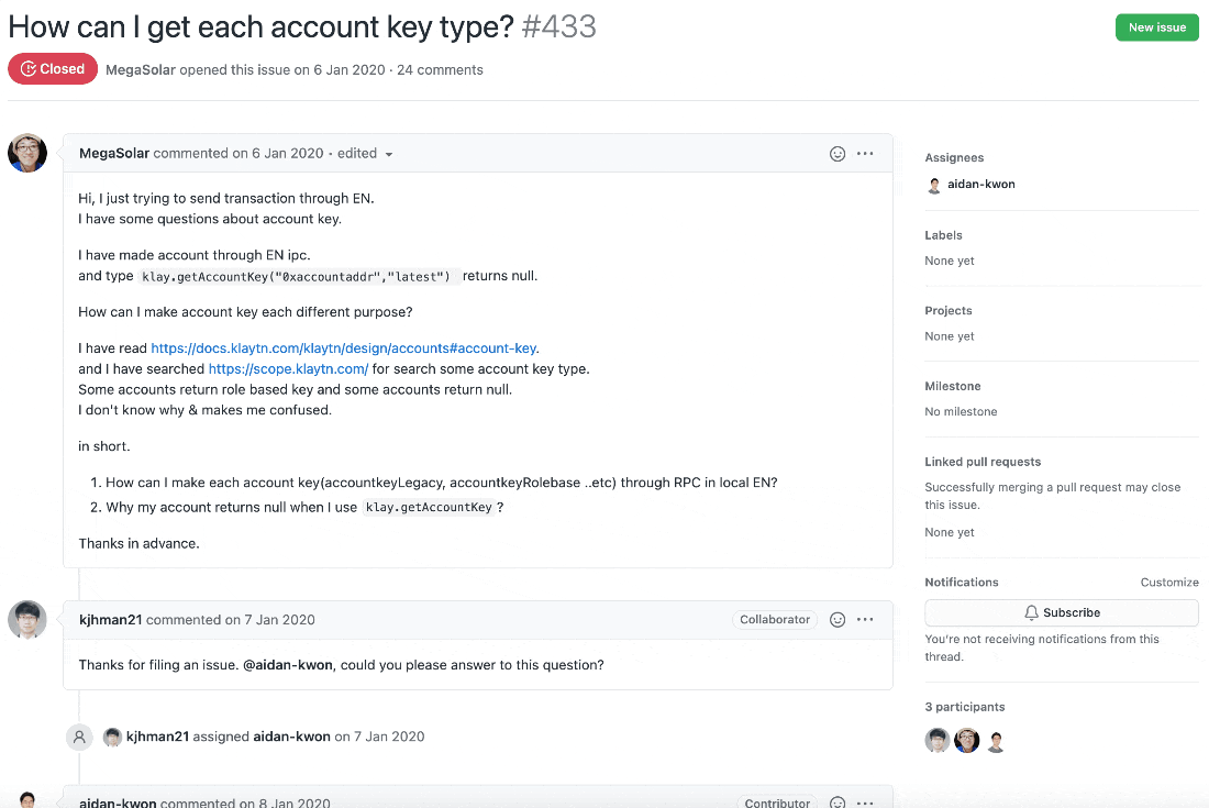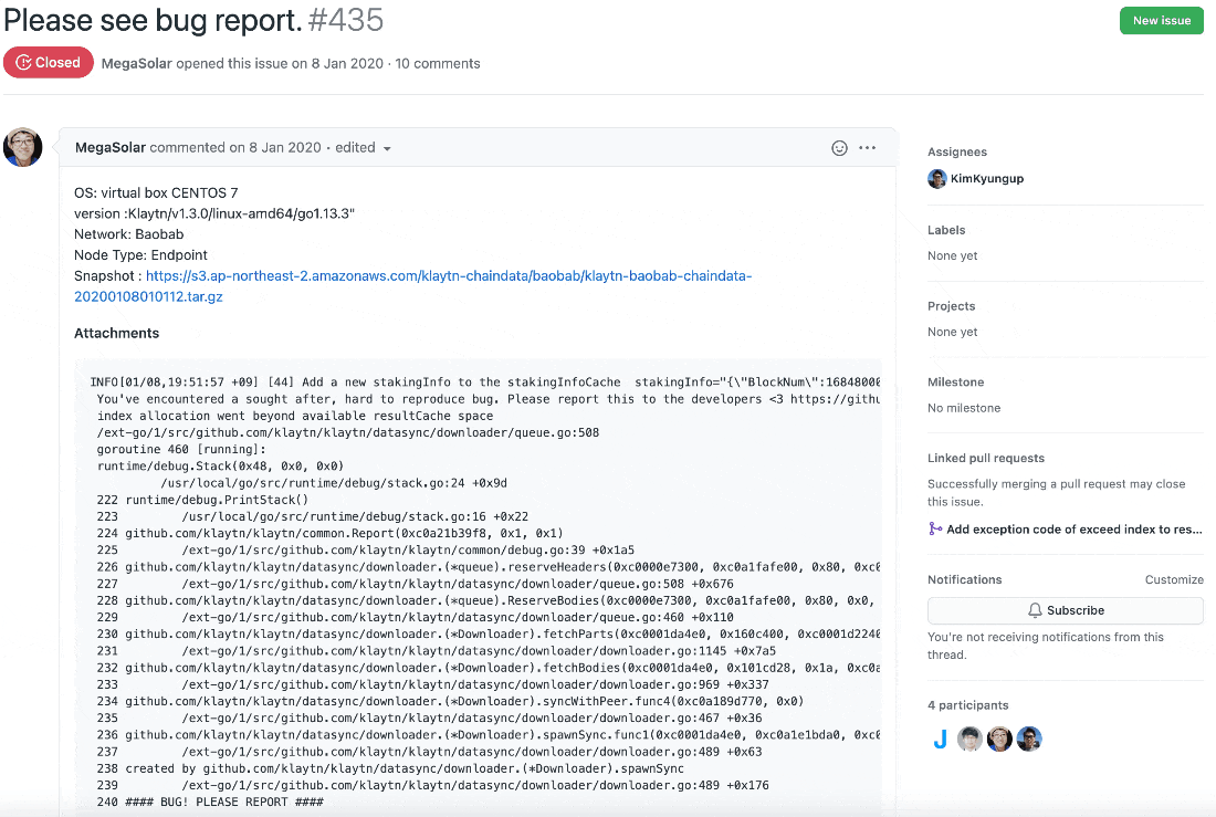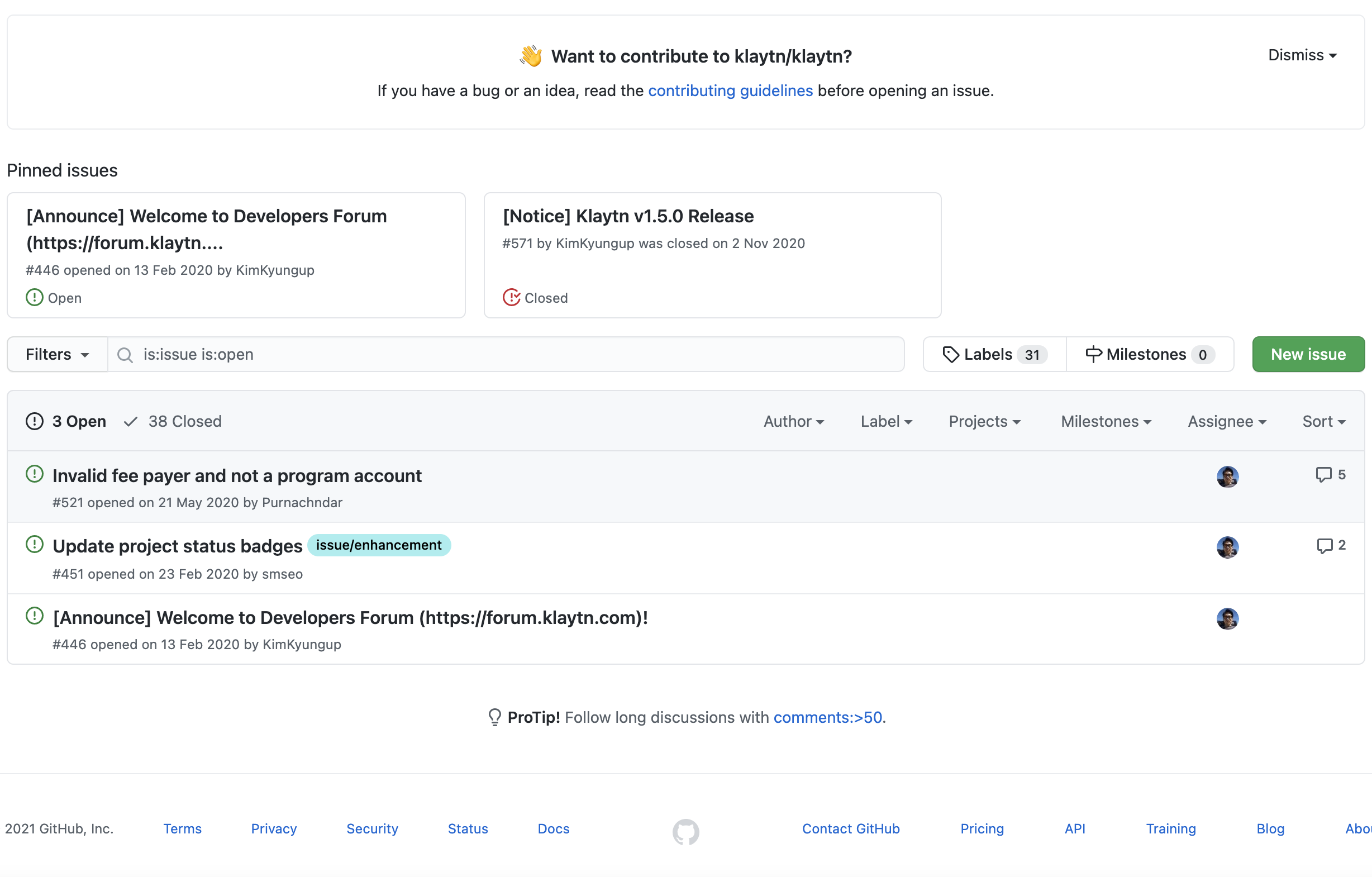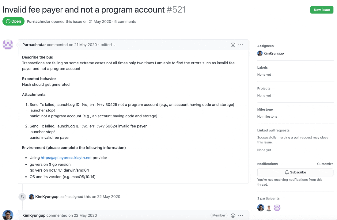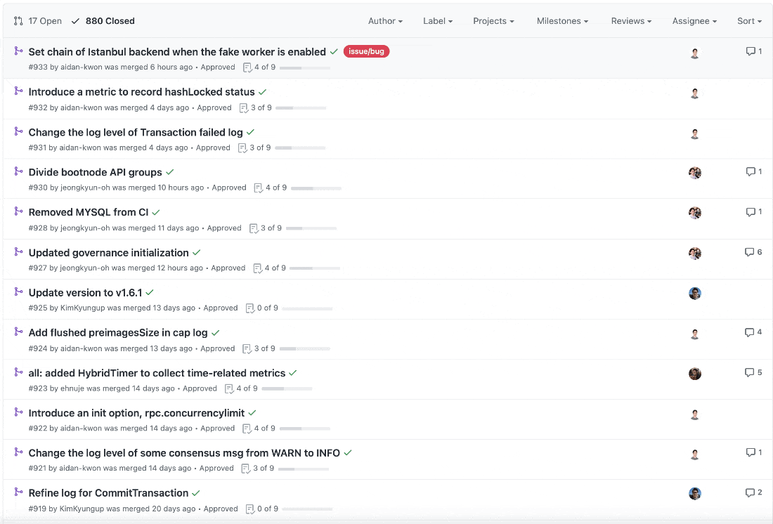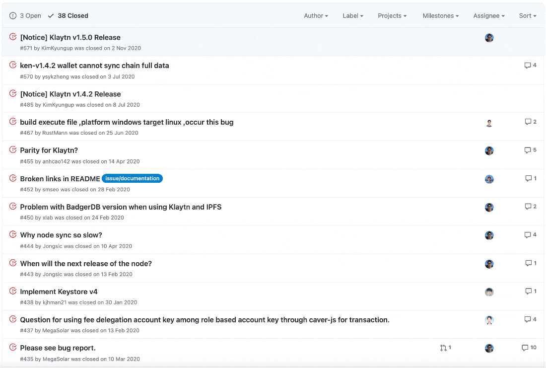 프로젝트에서 가장 중요한 부분은 개인적으로 버그나 개선사항이 생겼을 때 이슈를 작성하고 관리하는 것이라고 생각합니다. 이슈를 활용해서 프로젝트에서 발생되는 모든 문제들을 관리할 수 있습니다. 프로젝트에서 이슈들까지 제대로 관리하고 있다면 해당 코인을 개발하는 개발진들의 개발 참여도는 굉장히 긍정적으로 보인다고 말씀드리고 싶습니다.