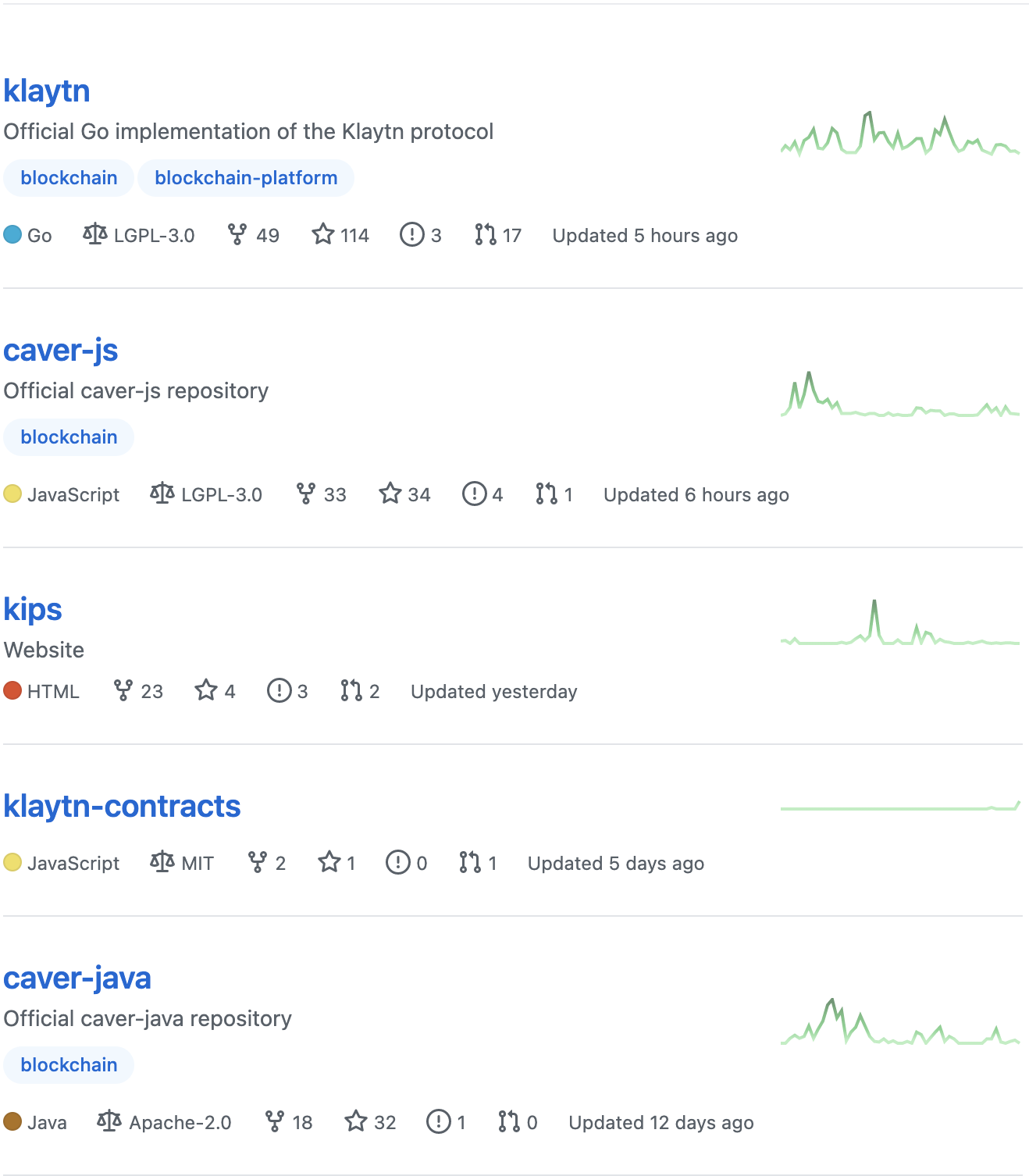 클레이튼 핵심 프로젝트 klaytn 저장소를 통해 클레이튼 개발팀의 개발현황을 살펴보도록 하겠습니다