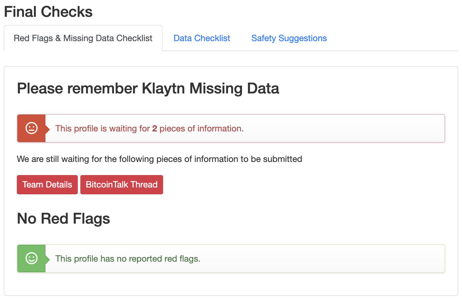 참고로 해당 스코어가 높으면 높을수록 프로젝트가 잘 진행되고 있다는 의미로 스캠이 아니라는 의미입니다.