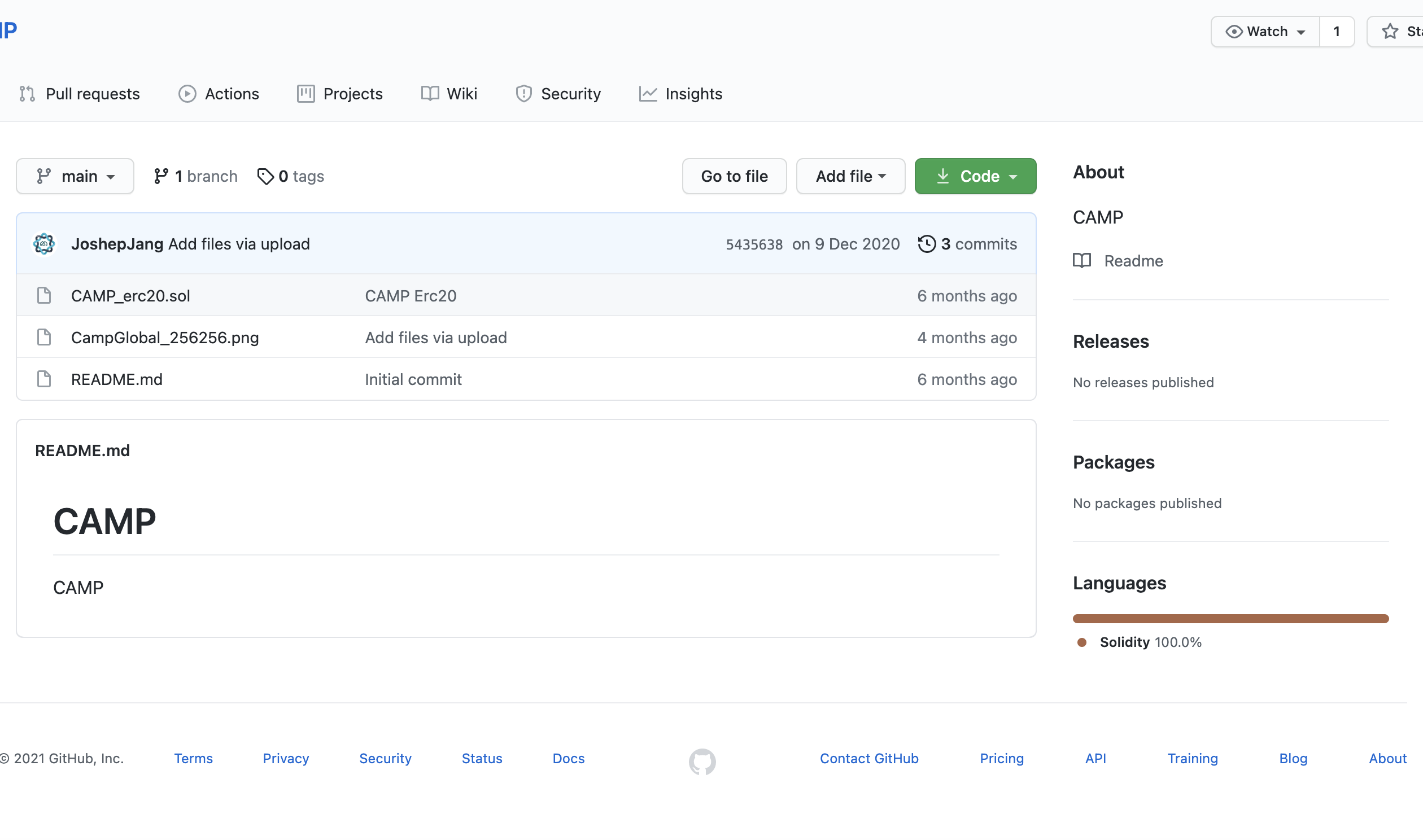 캠프코인(CAMP) 코인 개발 현황을 한번 살펴보도록 하겠습니다. 캠프코인 깃허브 프로젝트는 아래 링크에서 확인할 수 있습니다.