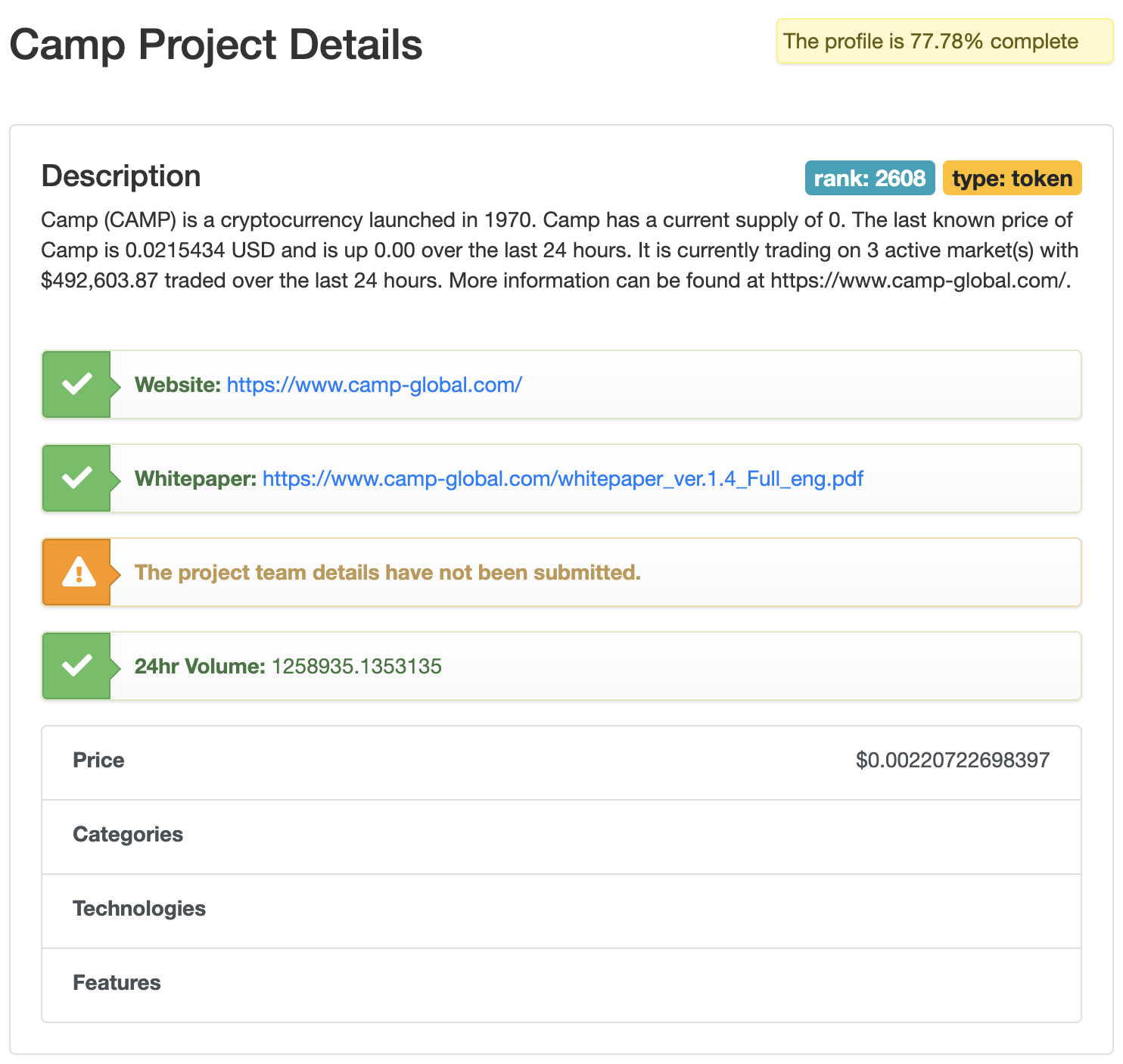 이번 포스팅에서 다뤄볼 코인은 캠프코인(CAMP)입니다.