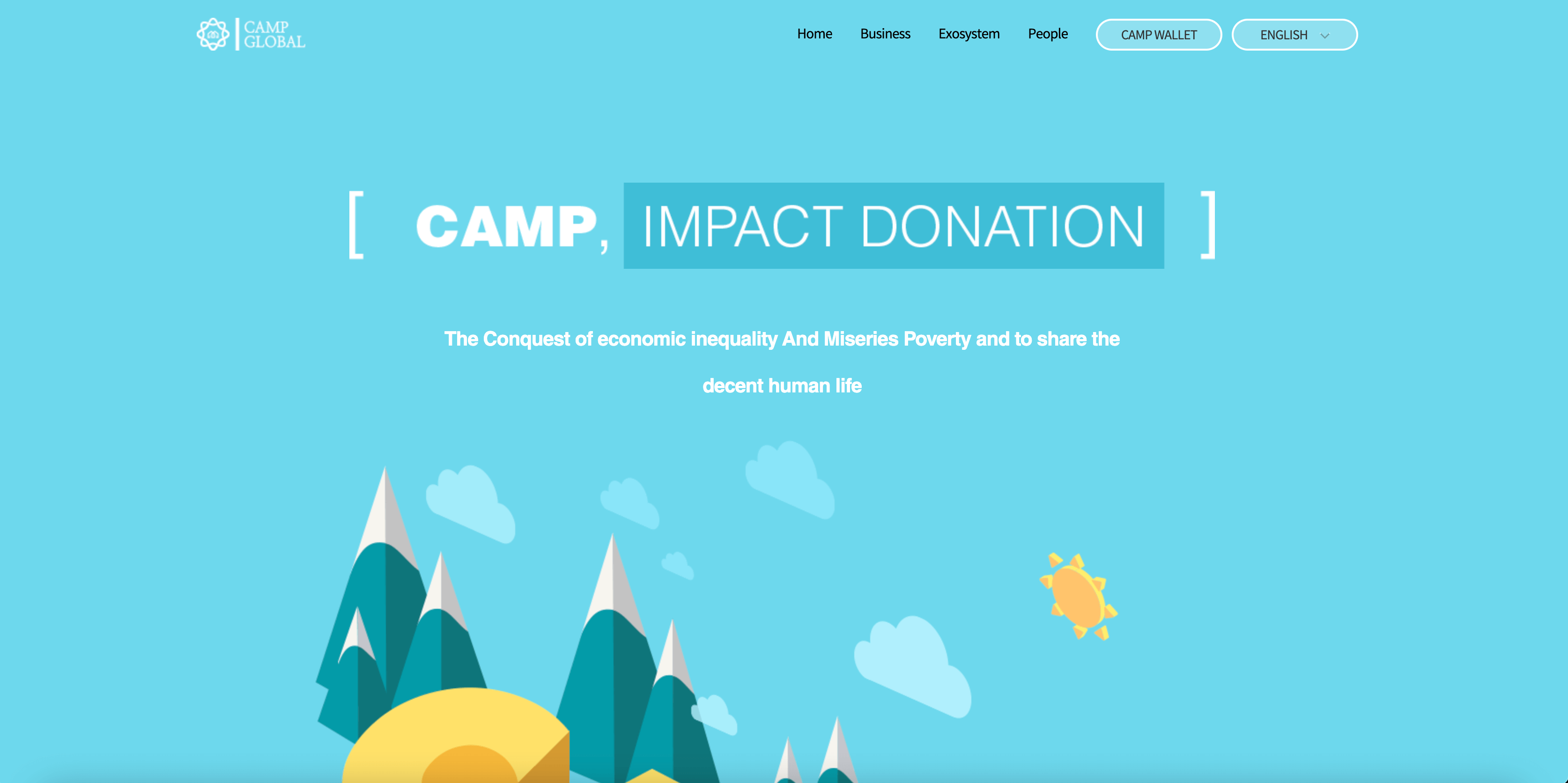 캠프 글로벌은 기업 경영 컨설턴트와 블록 체인 전문가들이 모여 기부 문화의 구조 변화를 통해 지속 가능한 저개발국의 발전 구조를 연구하면서 회사를 설립했습니다. 스타터를위한 새로운 회사가 설립 될 예정 이었으나 공동 설립자 중 한 사람이 먼저 설립 된 후 새로운 시작으로 운영되지 않는 법인을 사용하기로 결정했습니다.