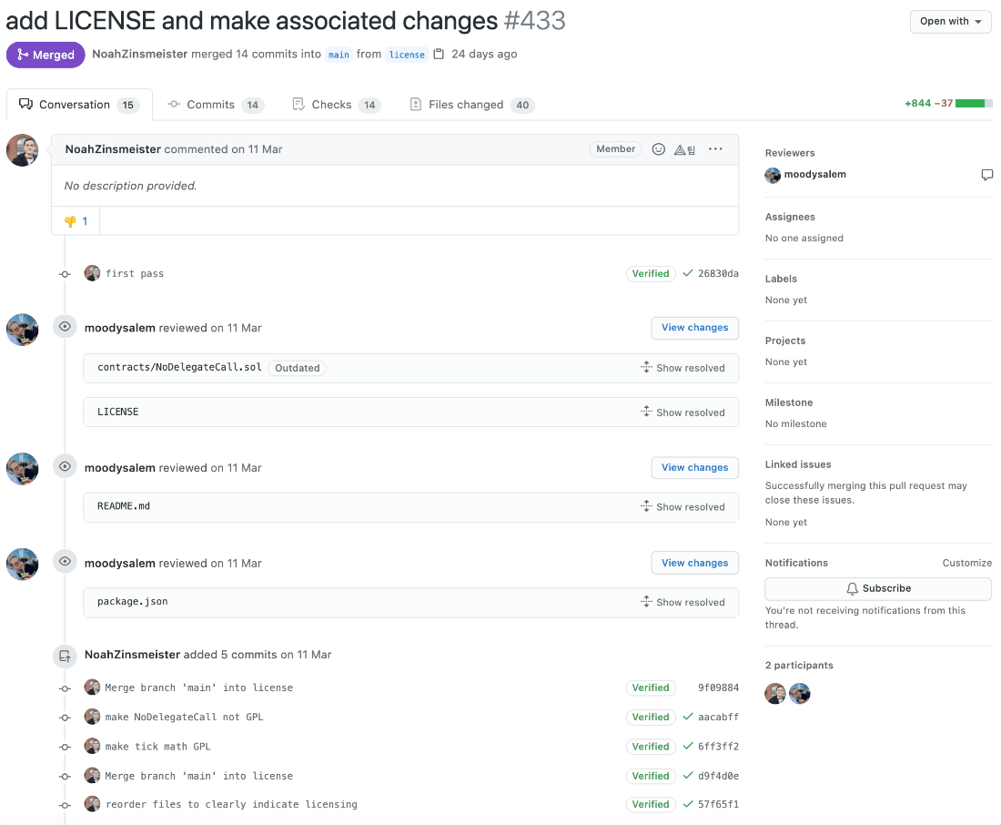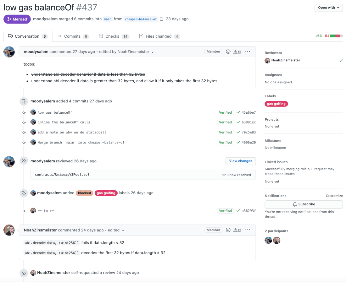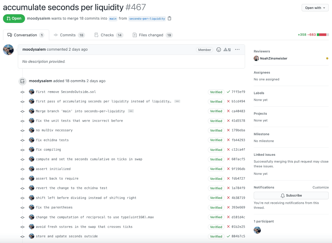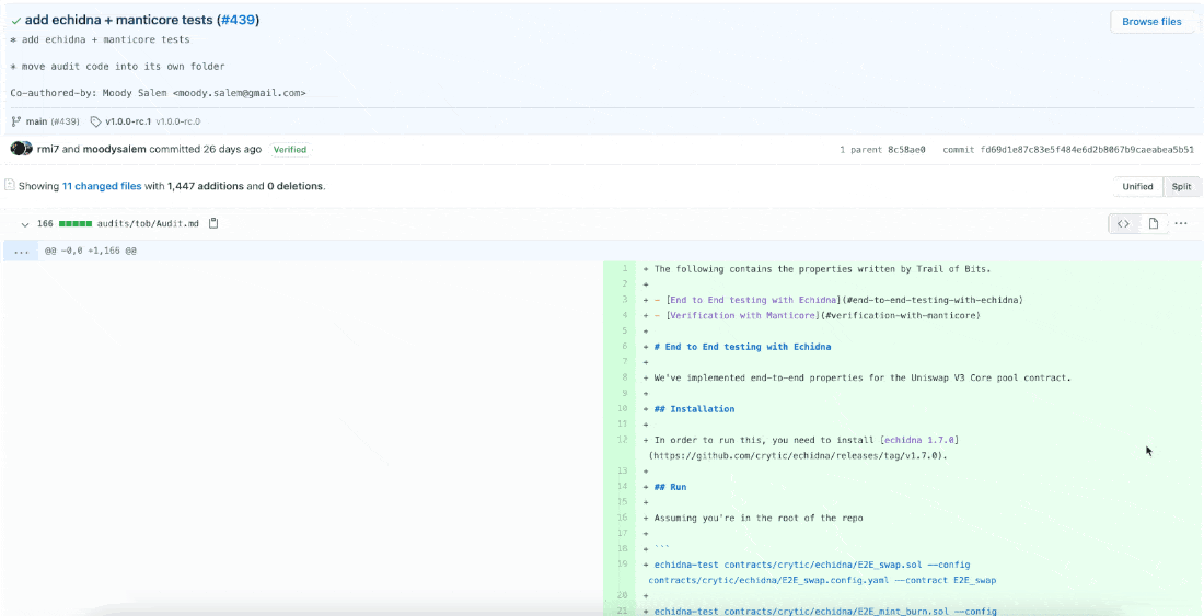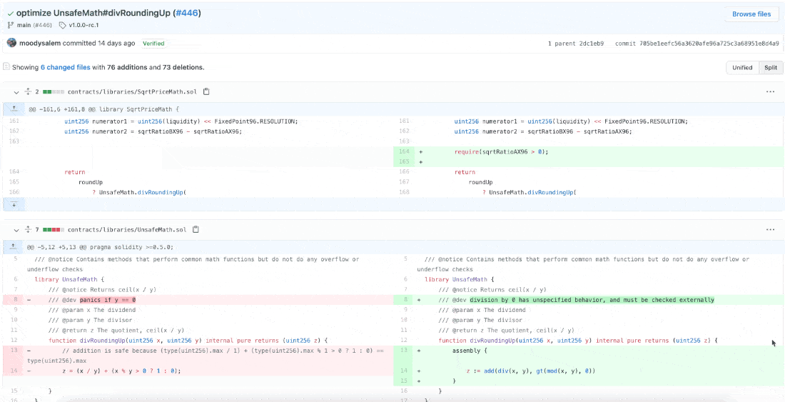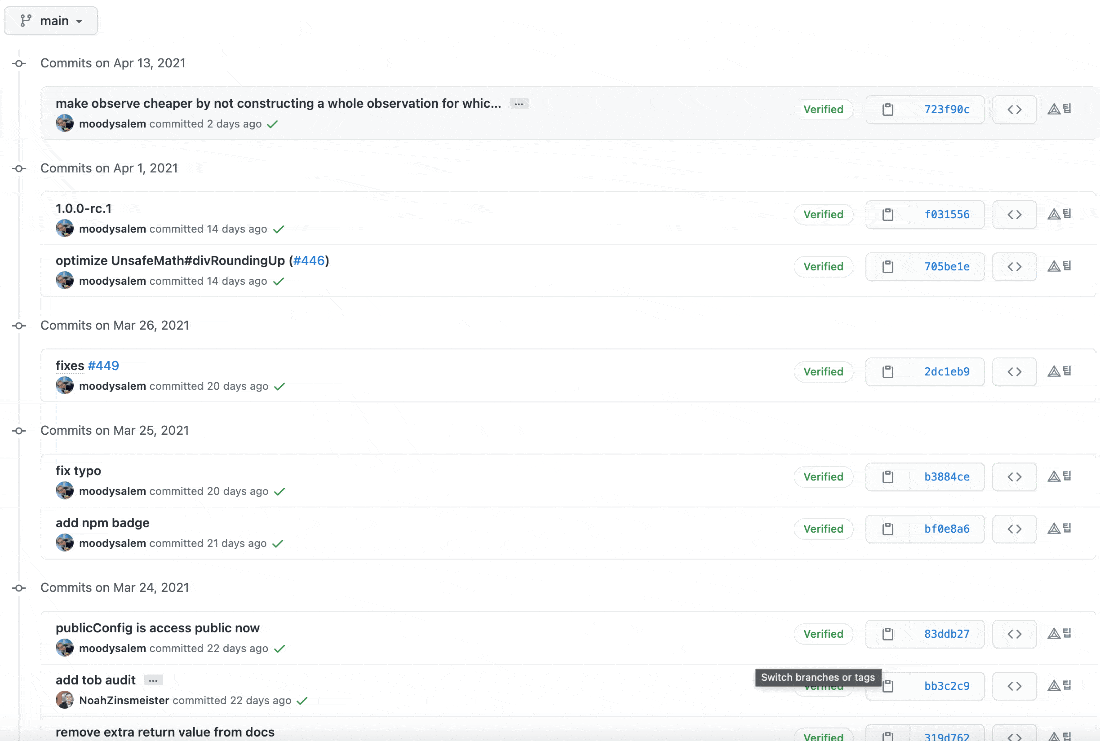 커밋 메시지를 살펴보면 유니스왑 개발팀은 메시지를 굉장히 명시적으로 잘 작성해주고 있는 것을 확인할 수 있습니다.