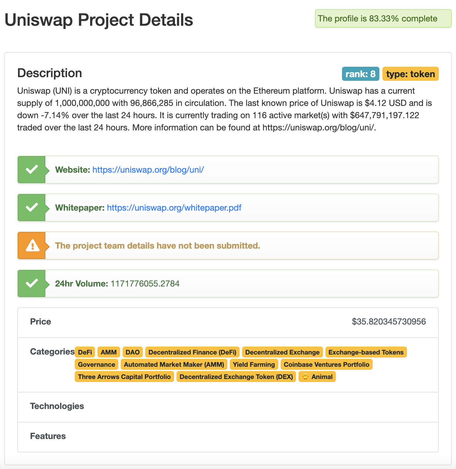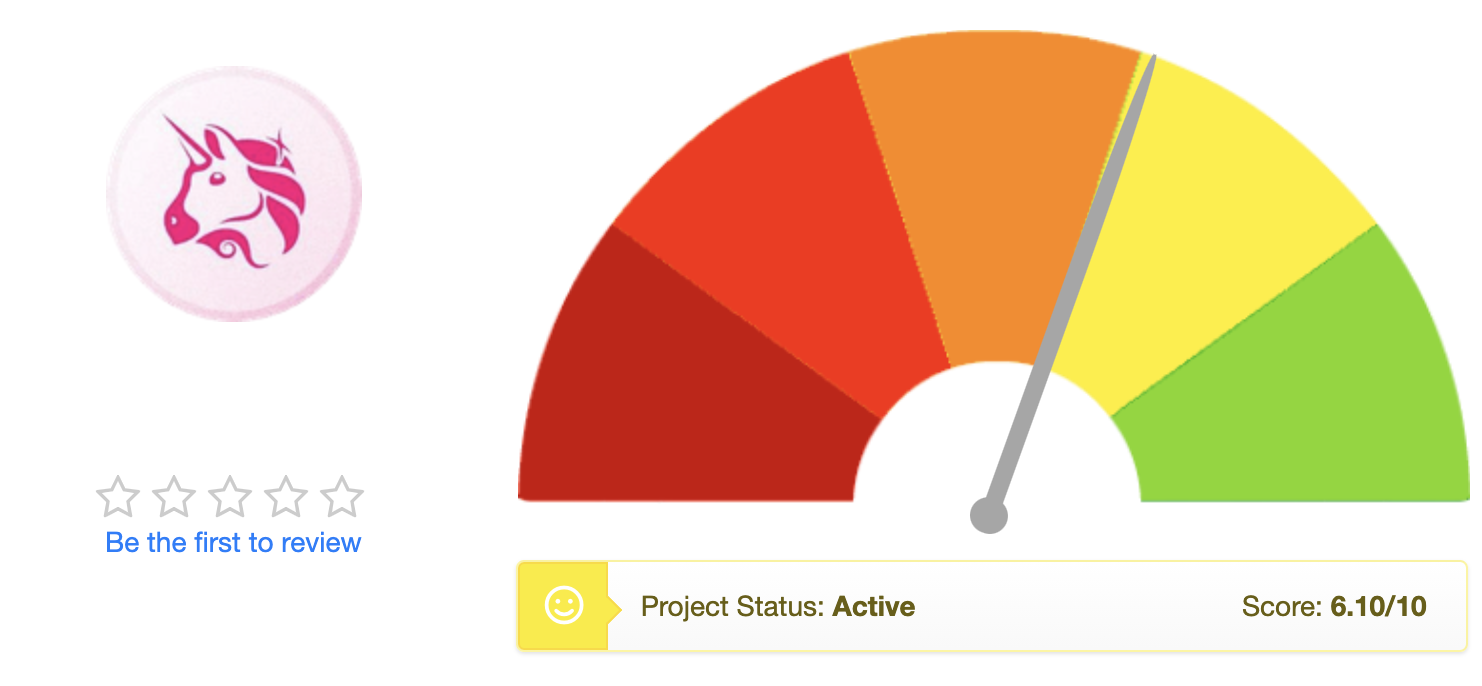 아래 스캠 판별 결과는 참고용으로만 봐주시면 좋을 것 같습니다. 기본적으로 코인 프로젝트에서 필수적으로 가져야할 요소들을 기준으로 스캠 판별을 해주는 사이트입니다. 유니스왑 스캠 스코어는 6.10로 굉장히 높은 스코어를 보여주고 있습니다.