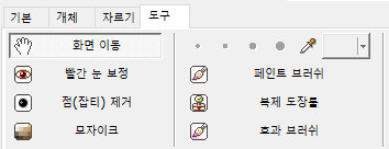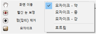 이미지 미리보기 바로 아래에 기본, 개체, 자르기, 도구 메뉴가 있는데 도구를 클릭합니다. 도구를 클릭하게 되면 다양한 기능이 있는데 여기서 우리는 모자이크를 선택하고 모자이크 강도를 고르면 됩니다. 모자이크 강도는 약, 중, 강 그리고 흐트림 기능까지 제공하고 있습니다.
