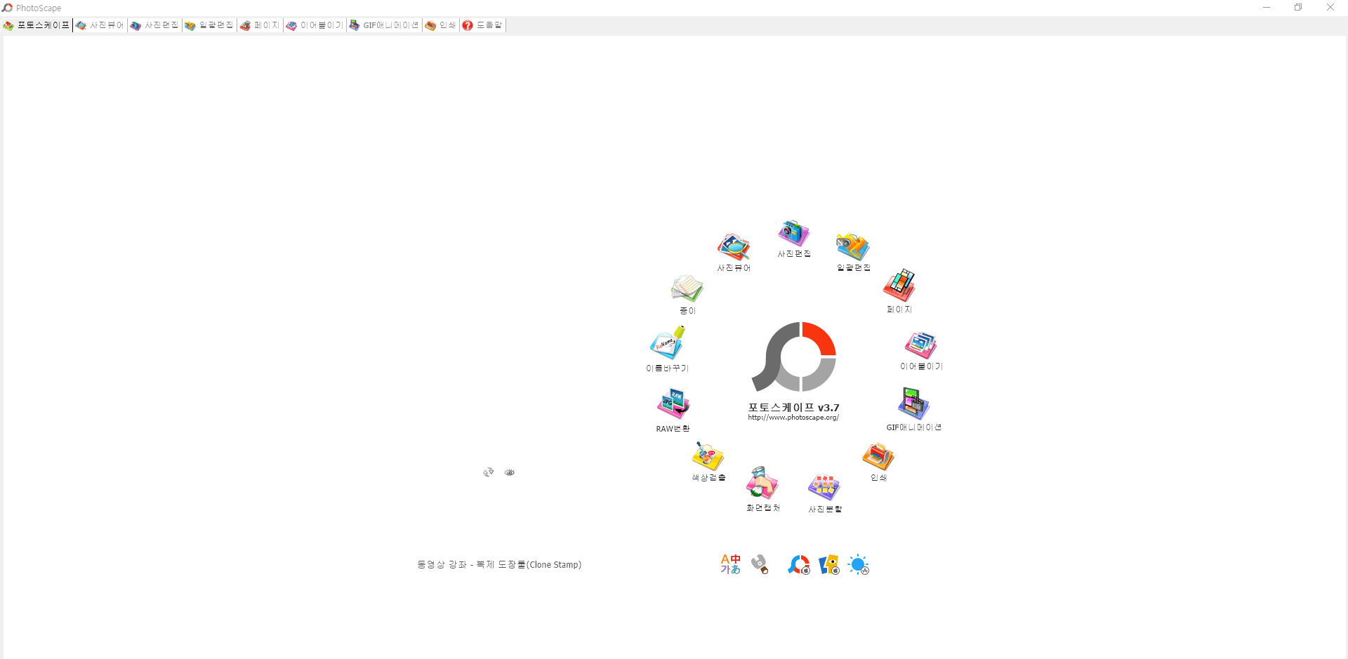 포토스케이프를 실행하면 아래 이미지와 같이 메인 화면으로 이동하게 되는데 우리는 모자이크를 처리하기 위해 이미지 편집으로 이동하겠습니다. 상단 메뉴에서 사진편집을 클릭해 주세요!