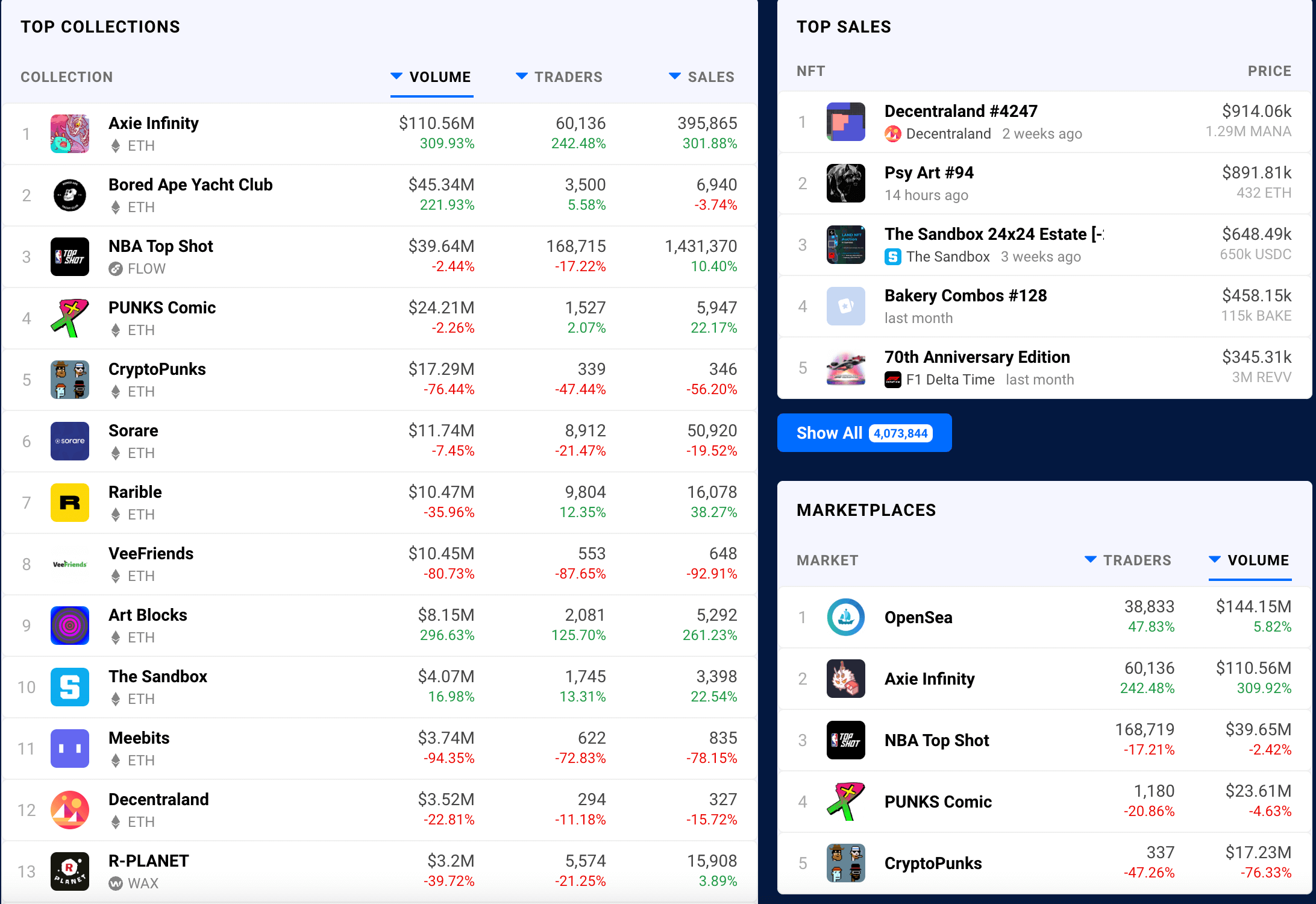 엑시인피니티(Axie Infinity)는 포켓몬에서 영감을 받은 이더리움 기반의 블록체인 게임입니다. 플레이어는 펫을 통해 전투하고, 수집하고, 키우고, 지상 기반 왕국을 건설 할 수 있습니다. 엑시 인피니티는 이더리움 생태계의 NFT 게임 중 1위를 기록하고 있으며 4만 명 이상의 사용자를 확보하고 있습니다. 또한 엑시 인피니티에서 발생되는 NFT의 월간 거래액이 120억 원 이상을 기록하는 등 괄목할만한 성장을 하고 있음을 확인할 수 잇습니다. 지난 2월에는 가상의 부동산인 랜드(Land)가 150만 달러 (한화 약 17억 원)에 거래된 적이 있습니다.