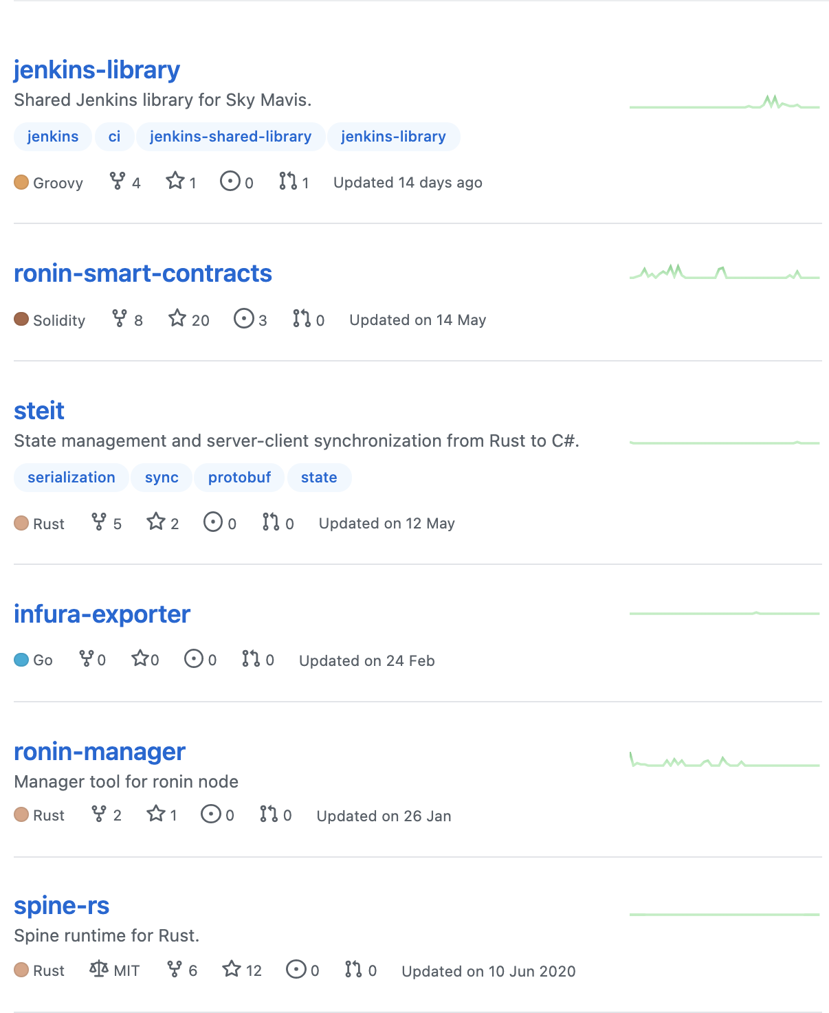 스카이마비스의 엑시 인피니티에서 공개된 깃허브 프로젝트는 아래에서 확인할 수 있습니다.
