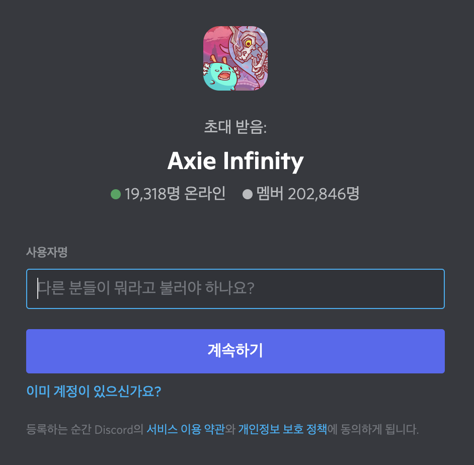 | 디스코드 | https://discord.com/invite/axie |
