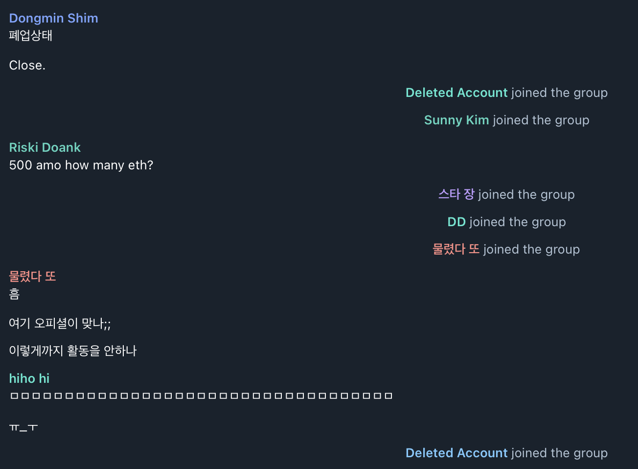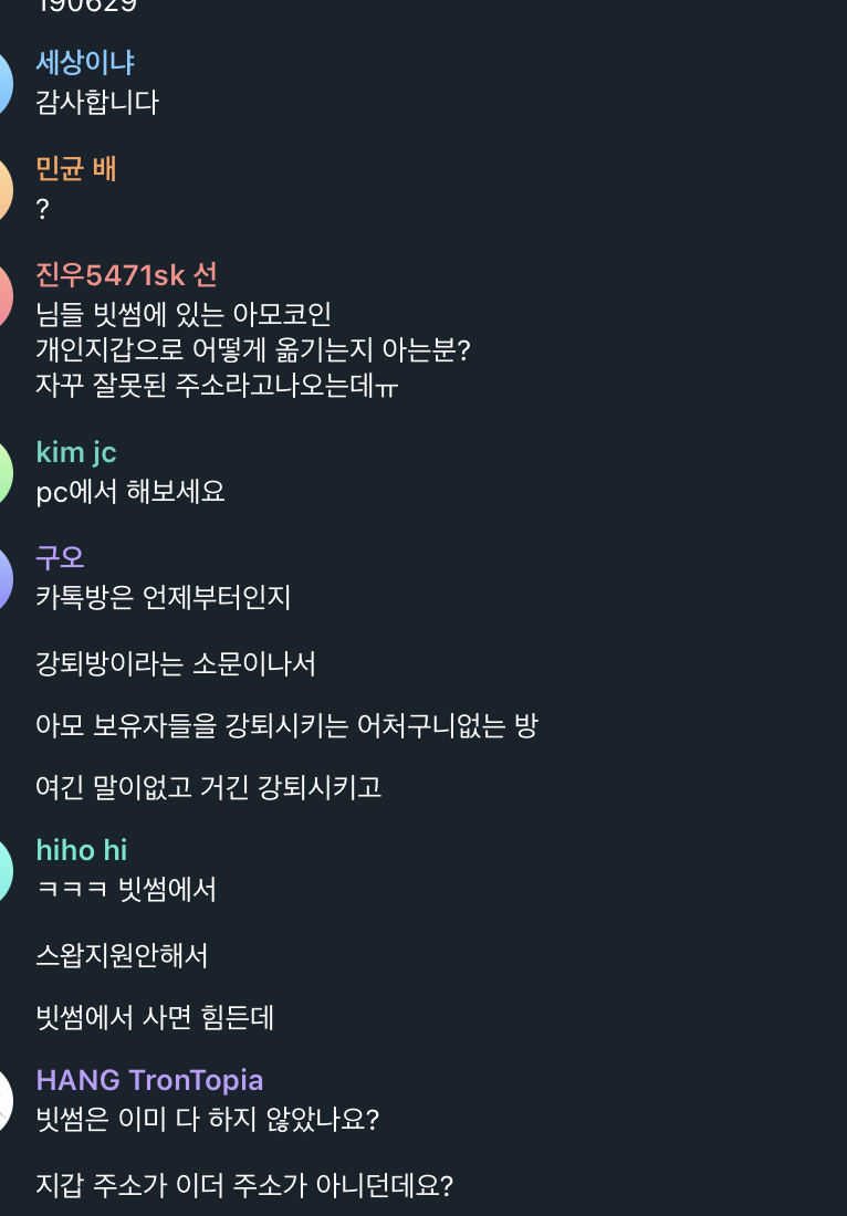 공식 텔레그램방 또한 관리자가 딱히 관리하지 않는 것으로 보입니다.