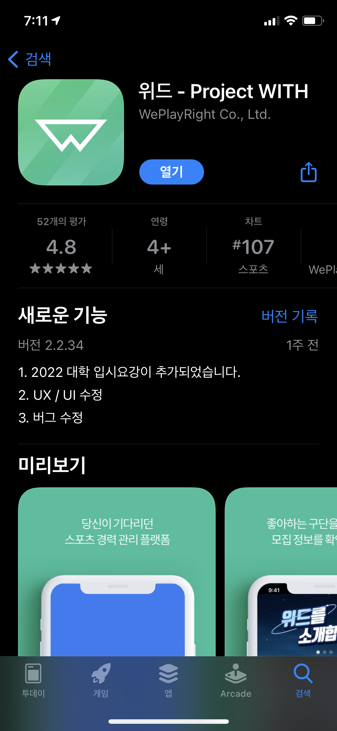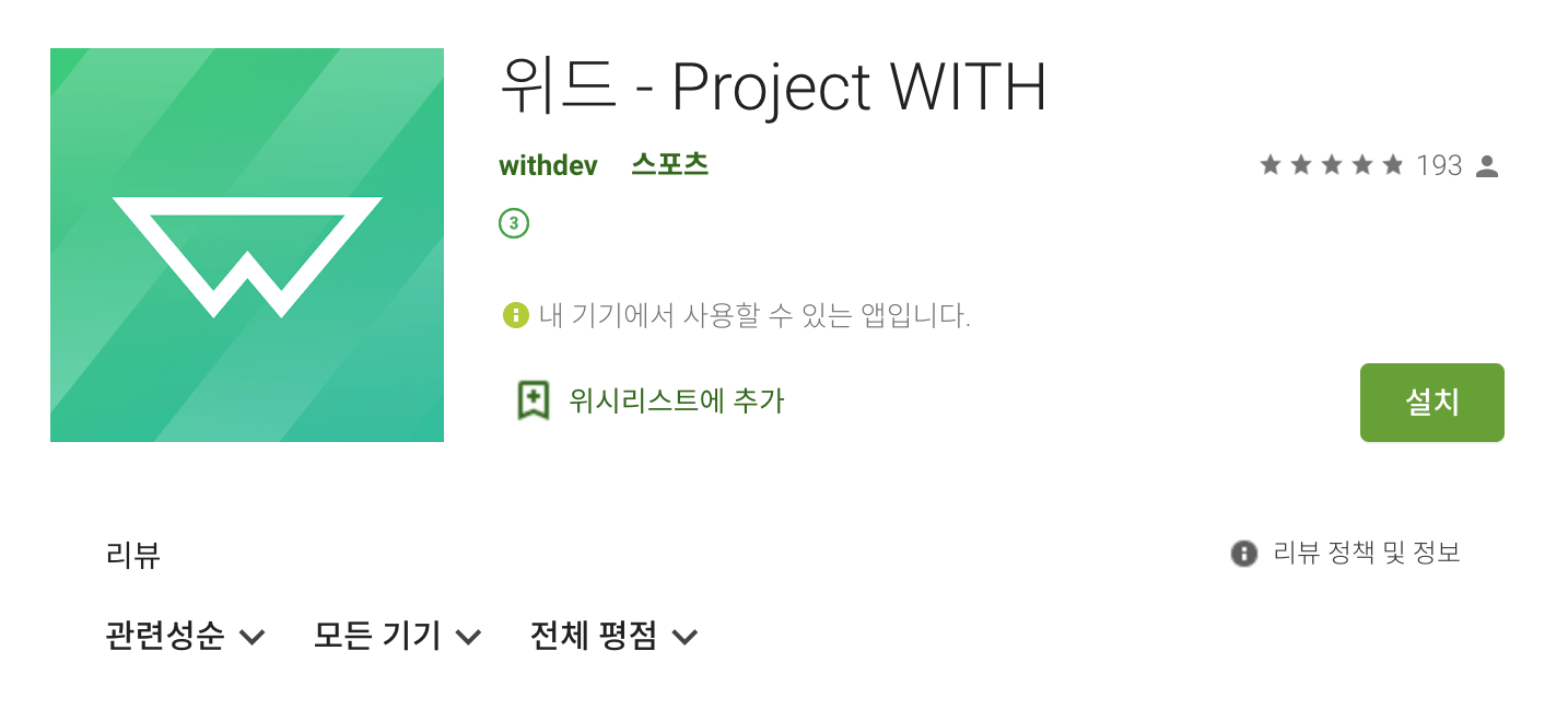 위드(Project WITH) 애플리케이션은 현재 안드로이드(android), iOS 모두 구축되어있습니다. 앱 평가 및 리뷰는 마케팅을 통해 높일 수 있는 영역이기 때문에(돈만쓰면 충분히 케어 가능) 단순 참고만 하시기 바랍니다.
