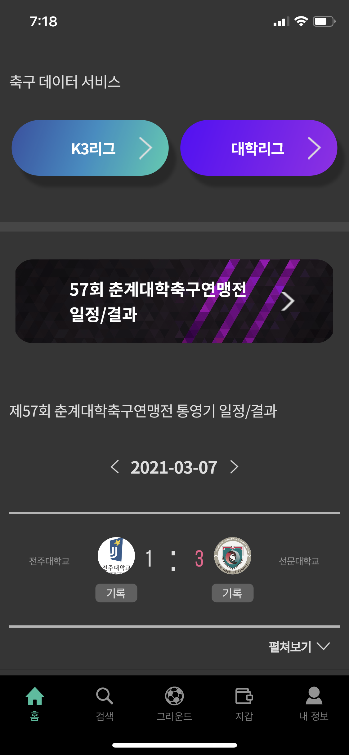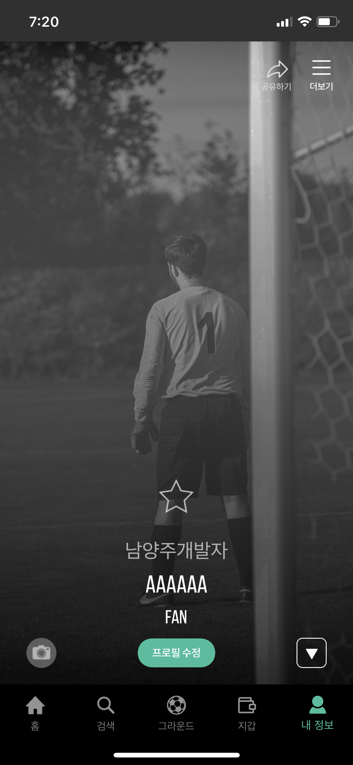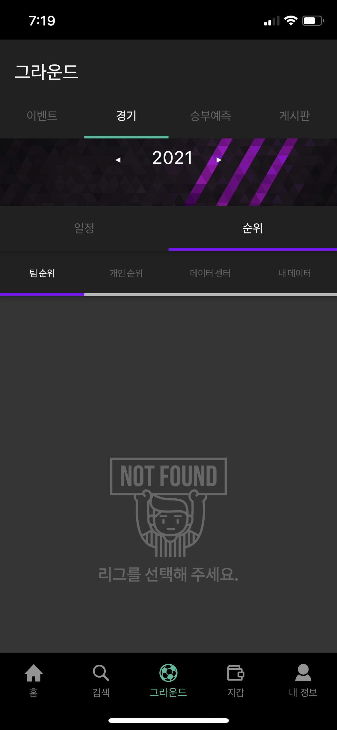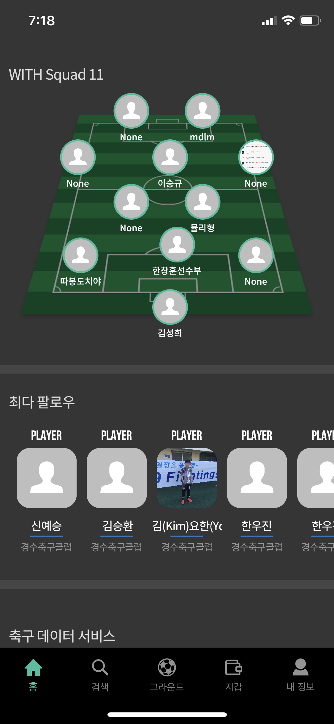 메인을 살펴보면 다양한 축구 관련 데이터들을 확인할 수 있는데 현재까지 데이터가 굉장히 부족하다고 느껴집니다. 선수 이미지, 네임 데이터가 디폴트 이미지와 None 형식으로 노출되는 개체들이 굉장히 많죠. 축구 관계자들이 흥미롭게 여길만한 축구 관련 데이터를 좀 더 방대하게 수집해서 해당 애플리케이션에 녹여내면 좀 더 좋을 것 같습니다.
