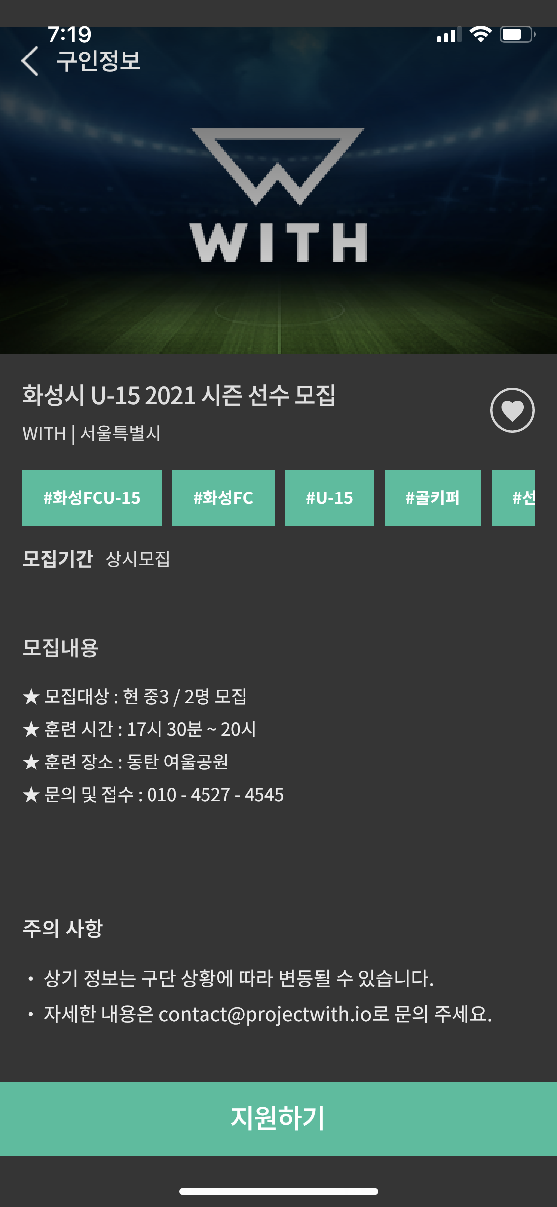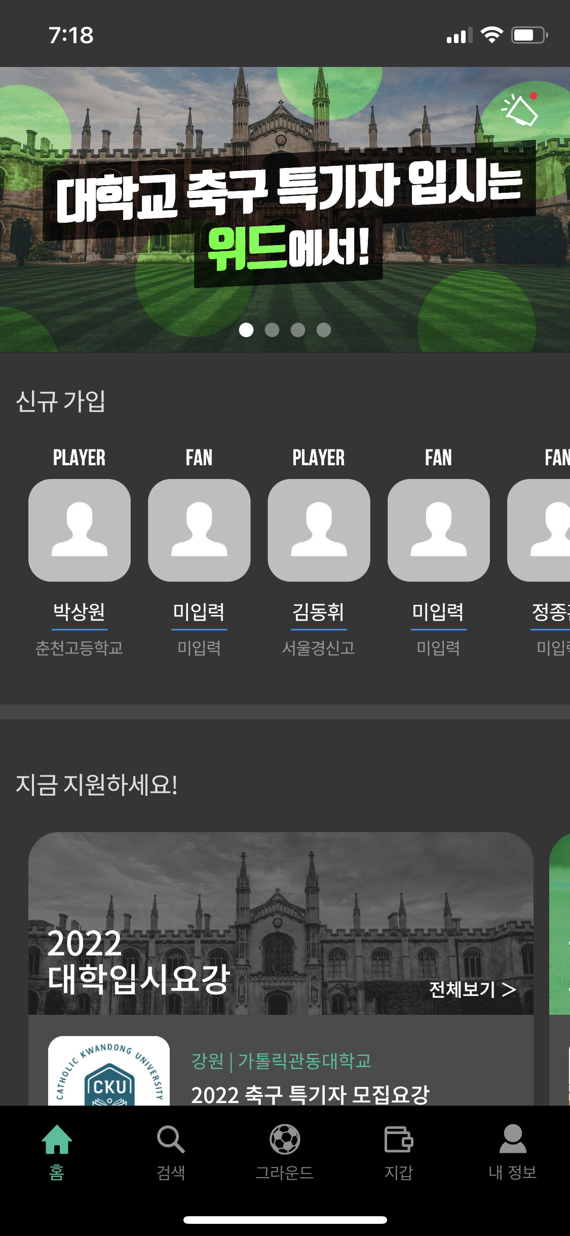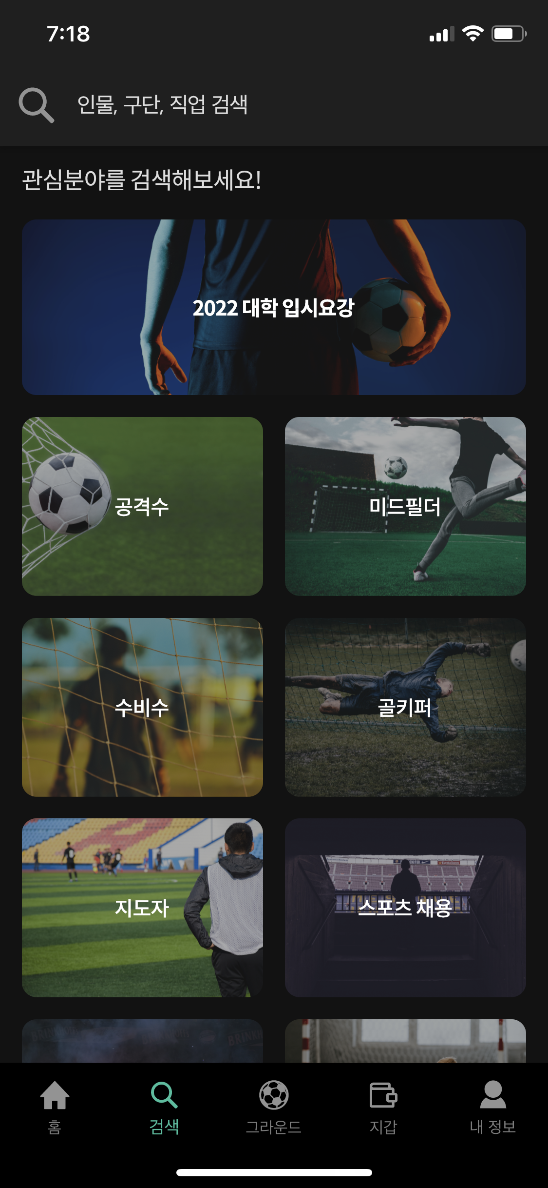 인물, 구단, 직업 검색을 통해 다양한 정보를 얻을 수 있는 컨셉같습니다. 자신의 포지션에 맞는 구인정보가 있고 그에 맞춰서 지원할 수 있는 축구버전 원티드같네요. 채용정보도 굉장히 많아지면 꽤 사용률이 높을 것 같습니다. (해당 애플리케이션이 어느정도 공신력을 갖고, 실제 의미있는 MAU를 달성한다면..) MAU를 말씀드린 이유는 이후에 설명드리겠습니다.