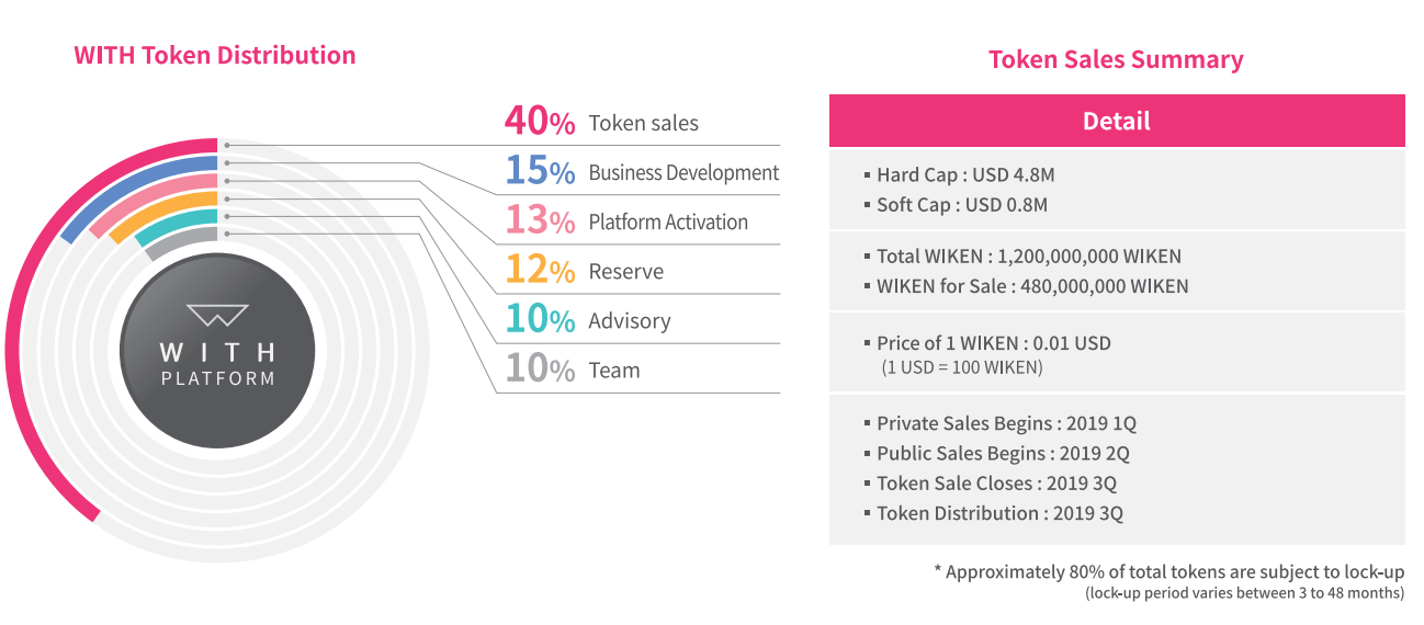 위드코인 토큰 분배 현황은 아래와 같습니다.