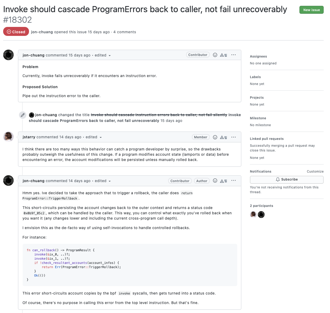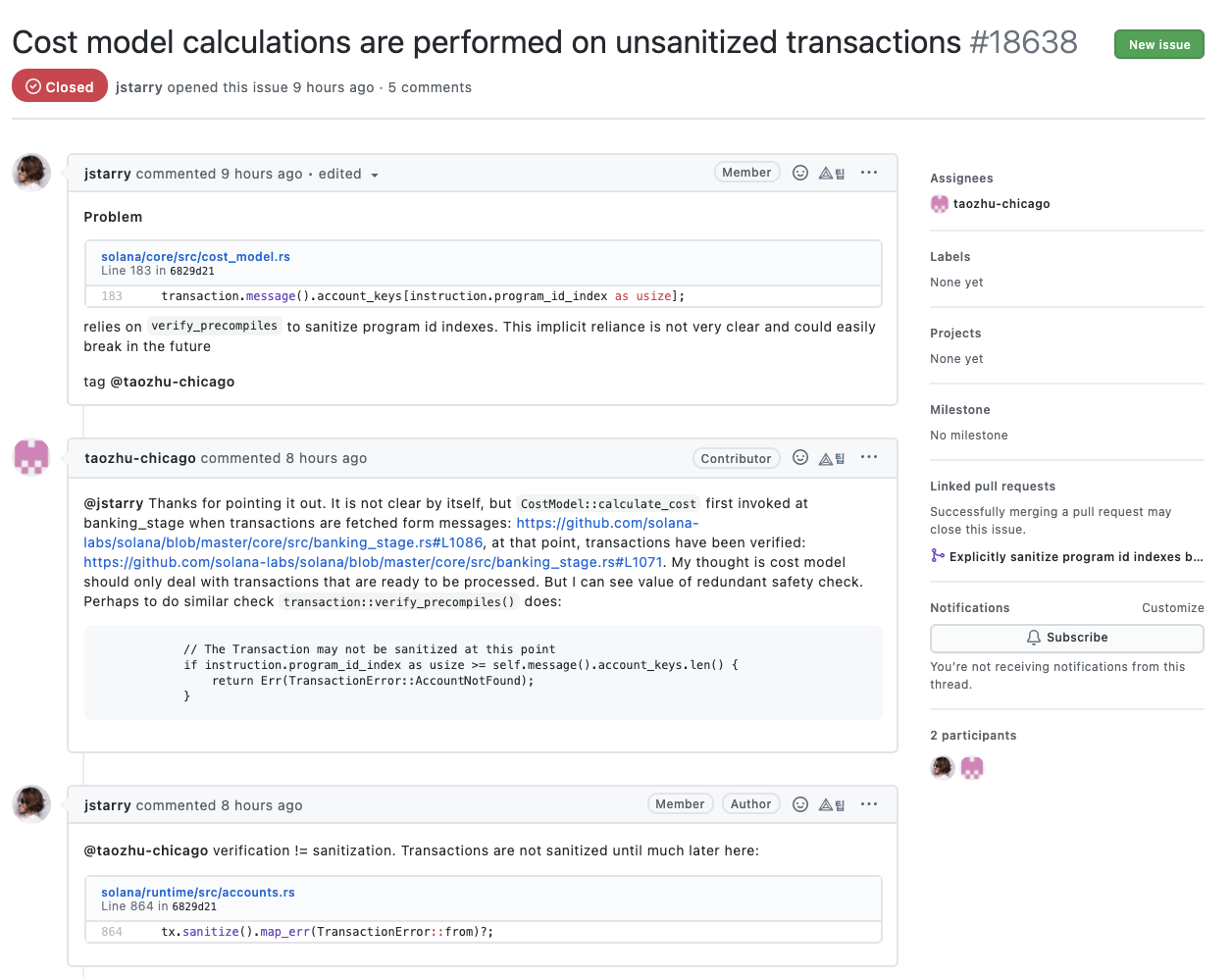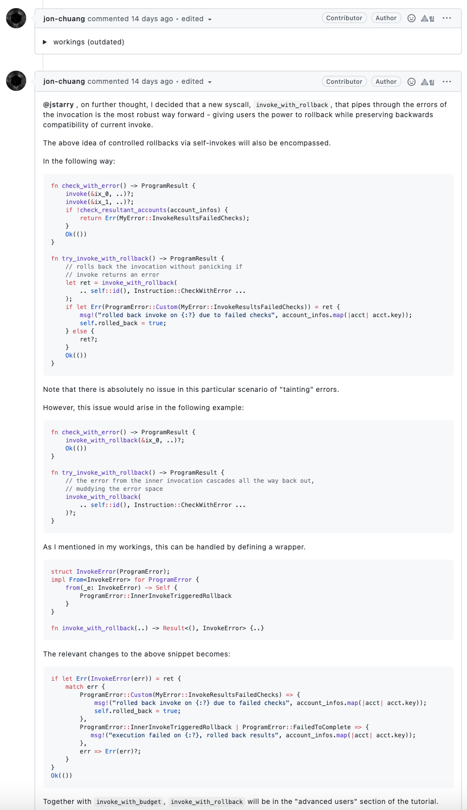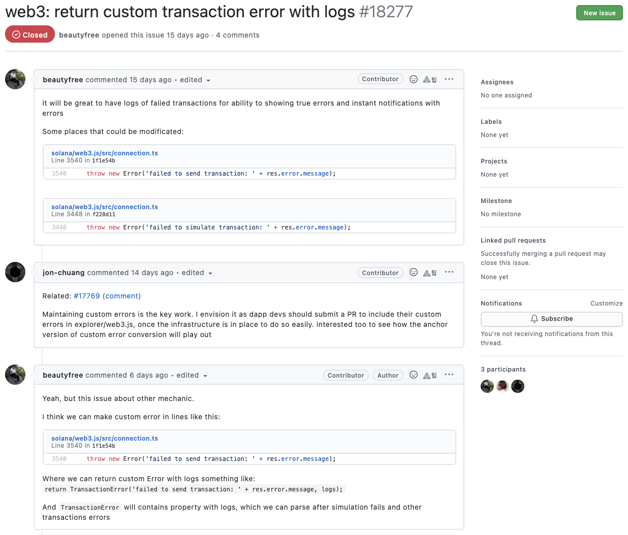 최근 올라온 이슈 일부분만 살펴보긴 했지만 일부를 보더라도 전체적으로 어떤 방식으로 진행하는지 대충 감은 옵니다. 게다가 대부분 프로젝트는 과거에 잘 진행되다가 최근으로 올수록 성의가 없어지는 경우가 많아서 최근 순으로 프로젝트를 살펴보면 오히려 더 더움이 되죠. 솔라나 개발팀의 경우 발생한 이슈에 대해서 해결하기 위해 굉장히 활발하게 커뮤니케이션을 하고 있는 것을 확인할 수 있습니다.