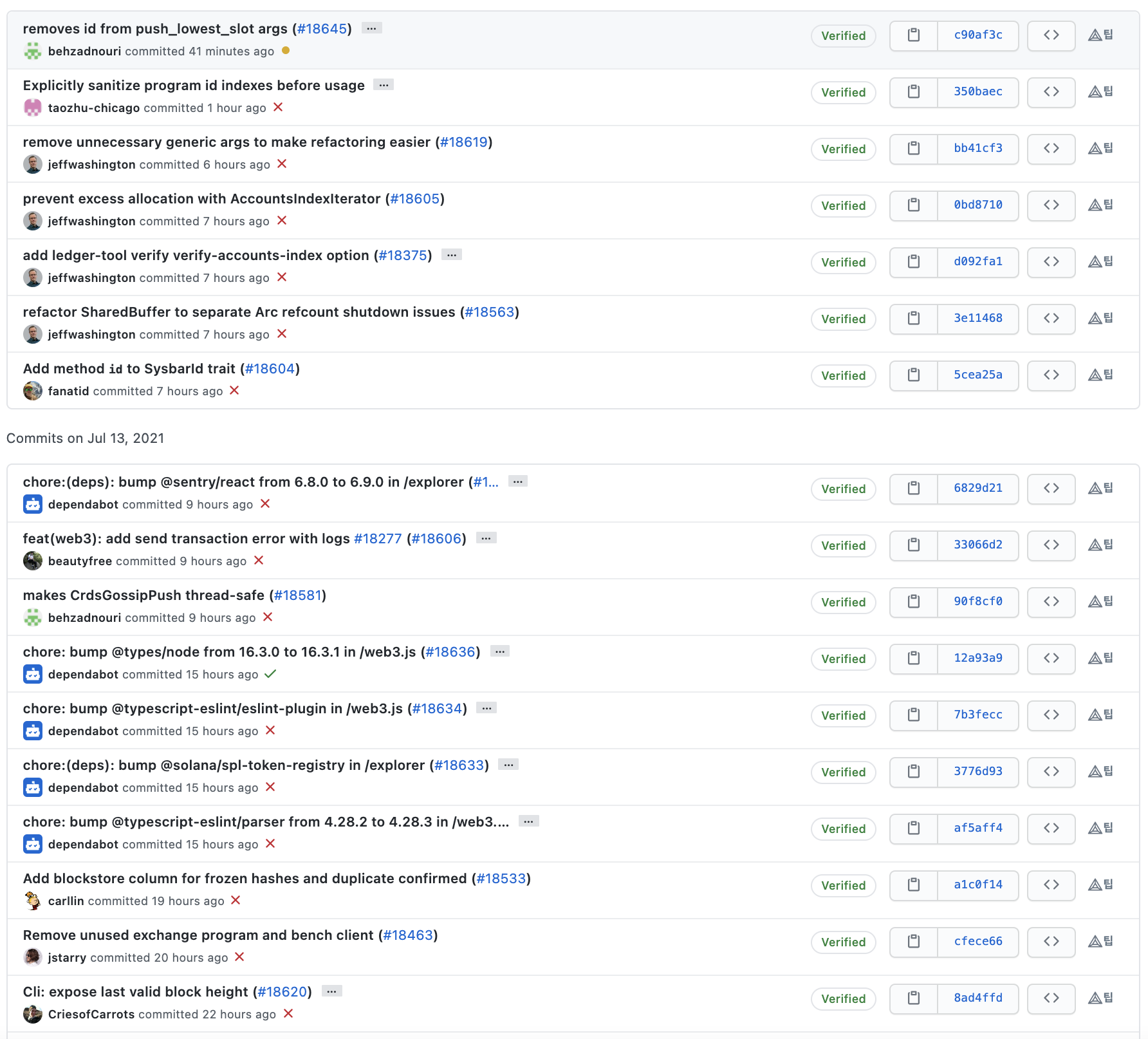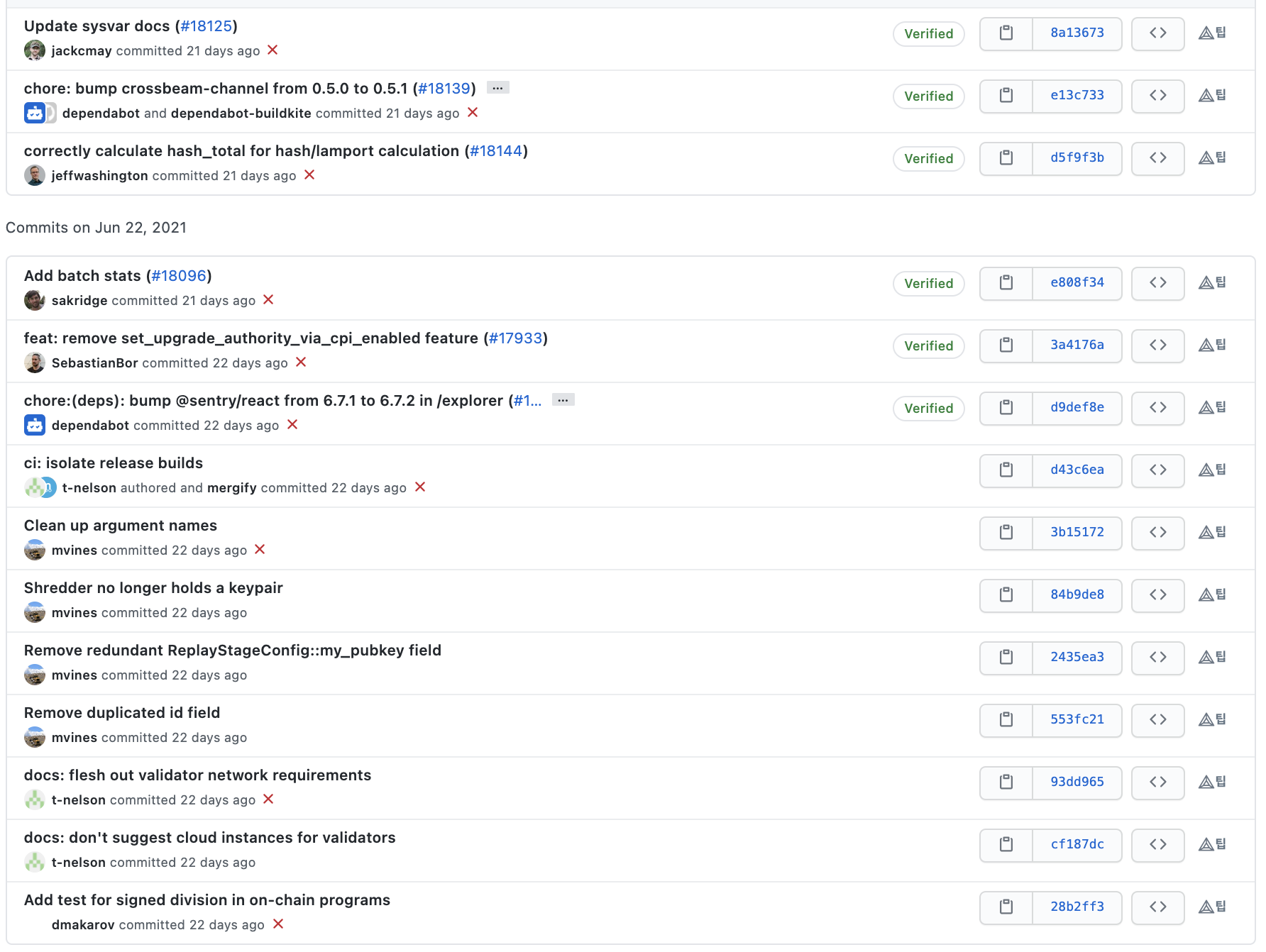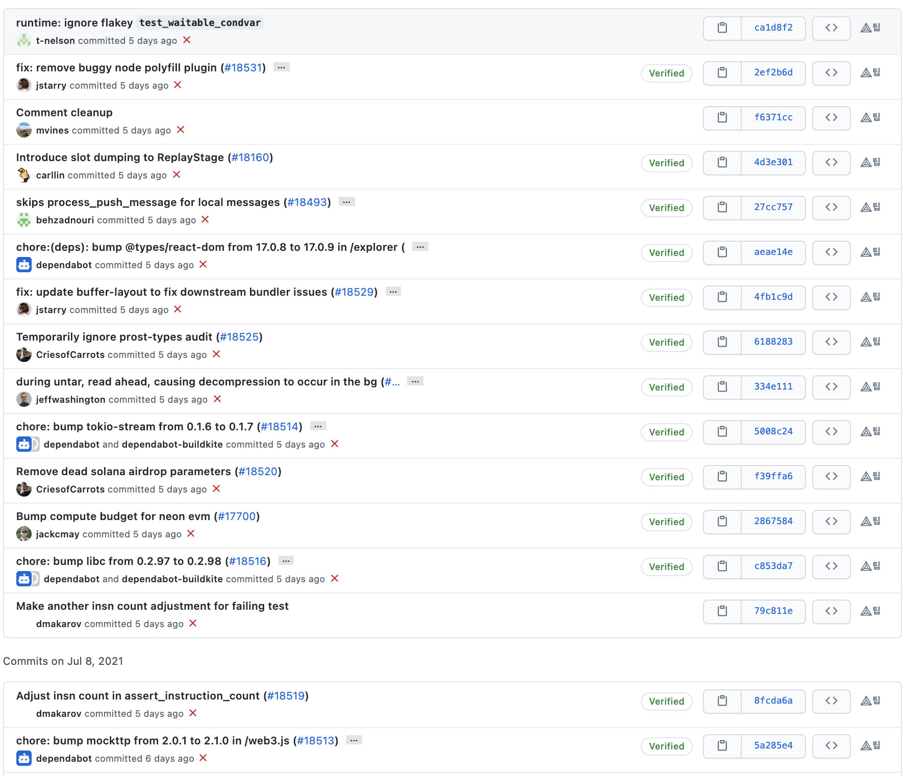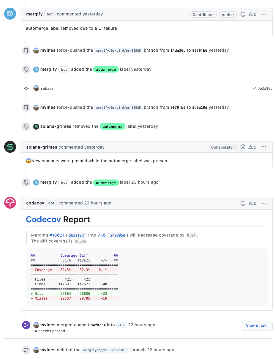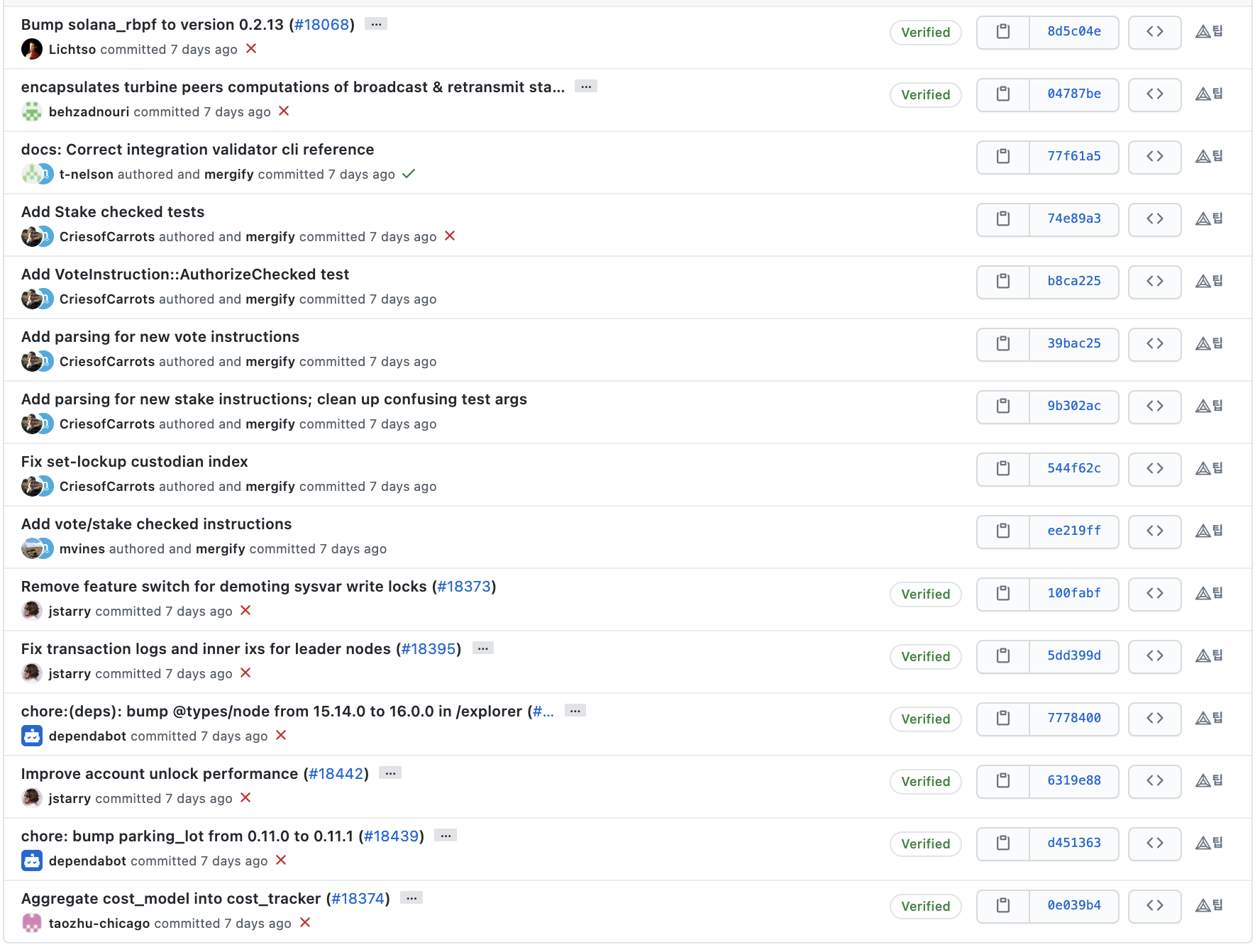 커밋 메시지를 살펴보면 솔라나 개발팀은 메시지를 굉장히 명시적으로 잘 작성해주고 있는 것을 확인할 수 있습니다.