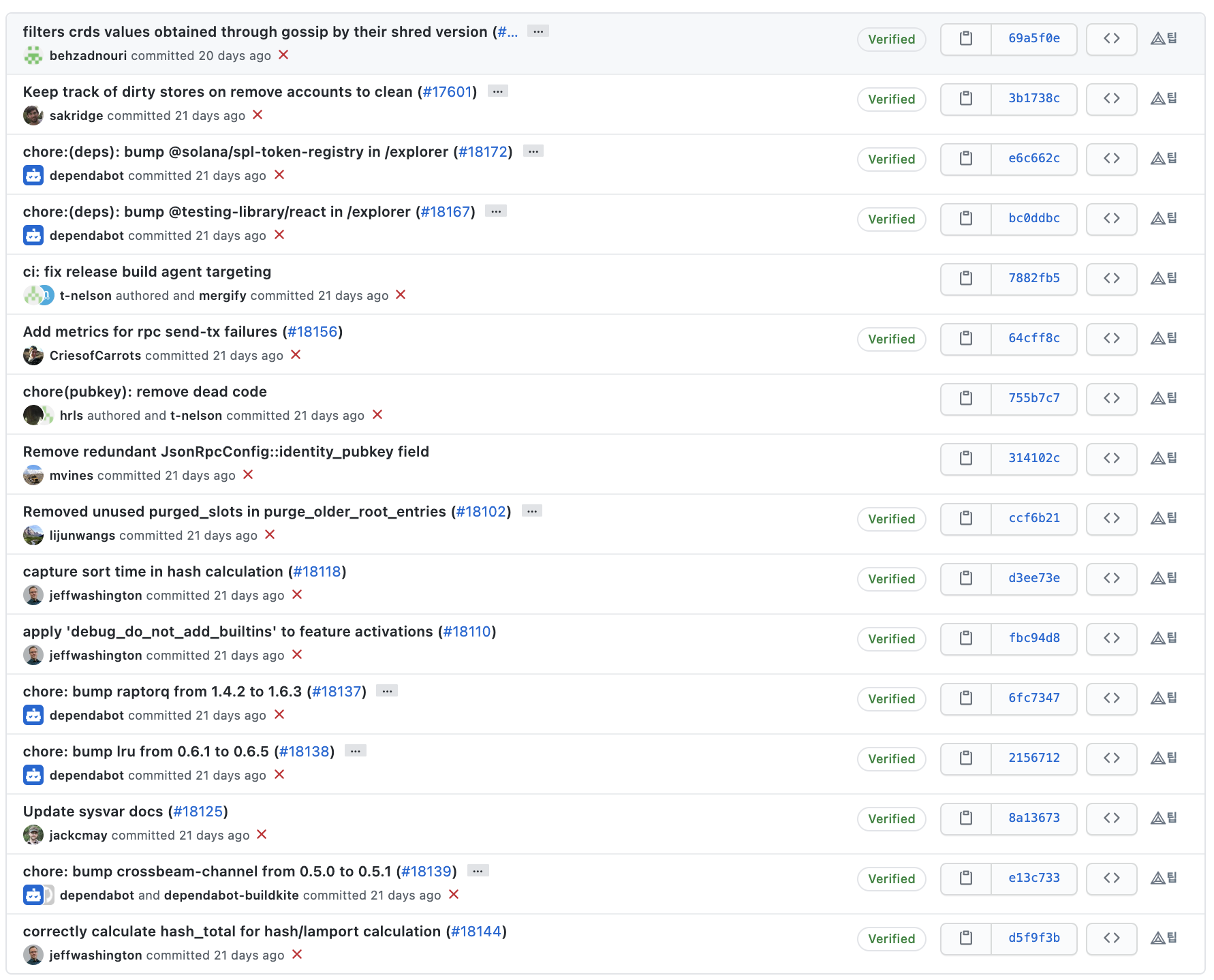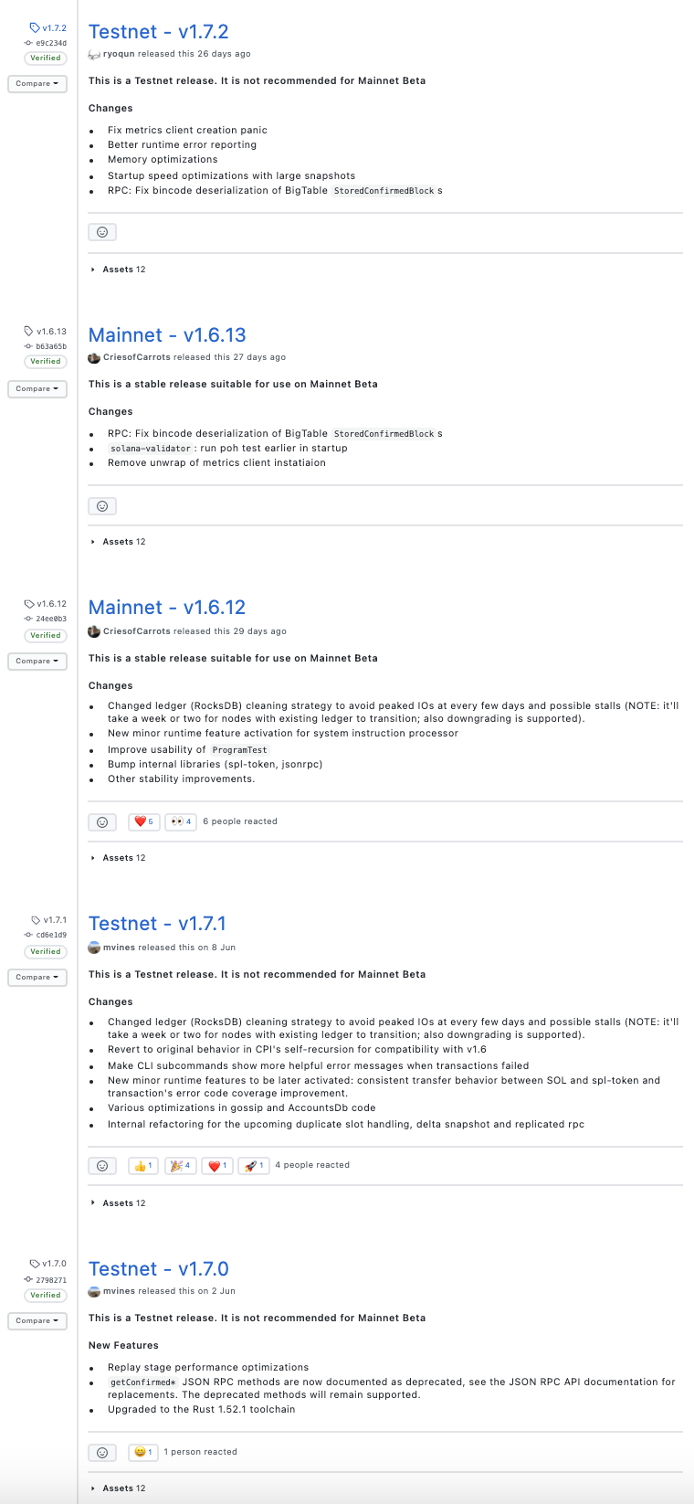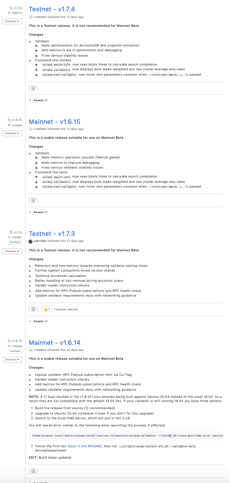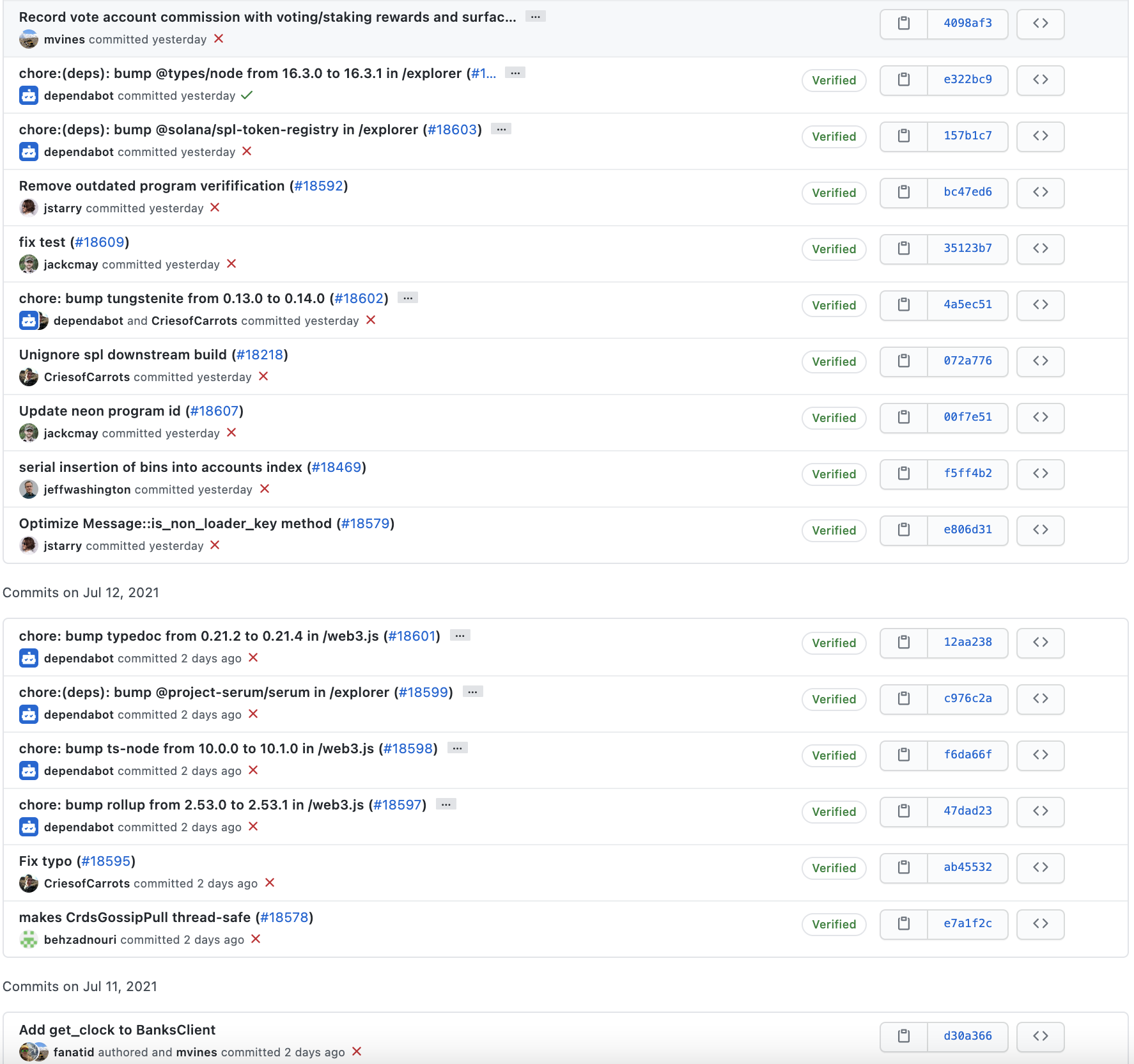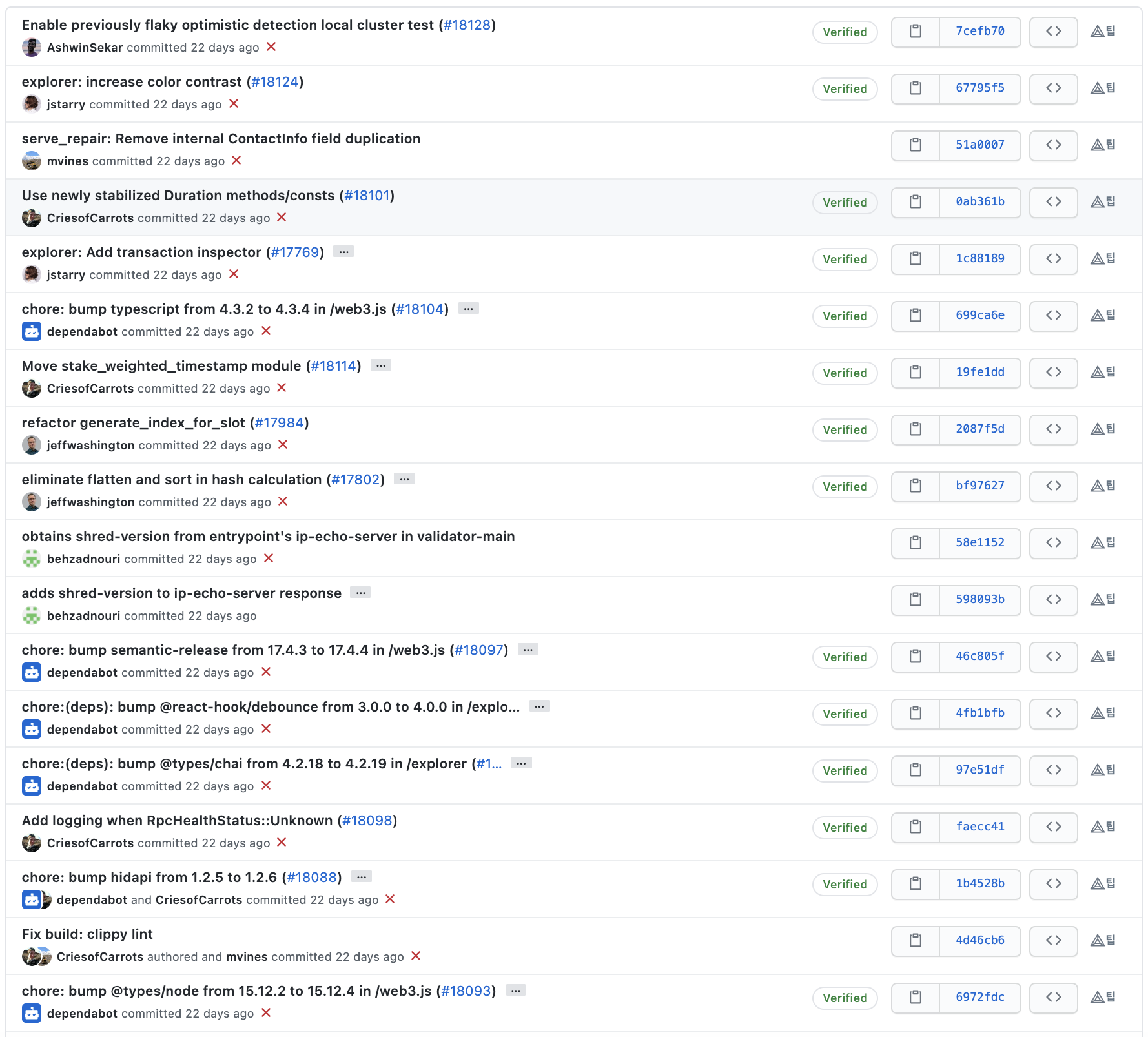 커밋 메시지를 살펴보면 솔라나 개발팀은 메시지를 굉장히 명시적으로 잘 작성해주고 있는 것을 확인할 수 있습니다.