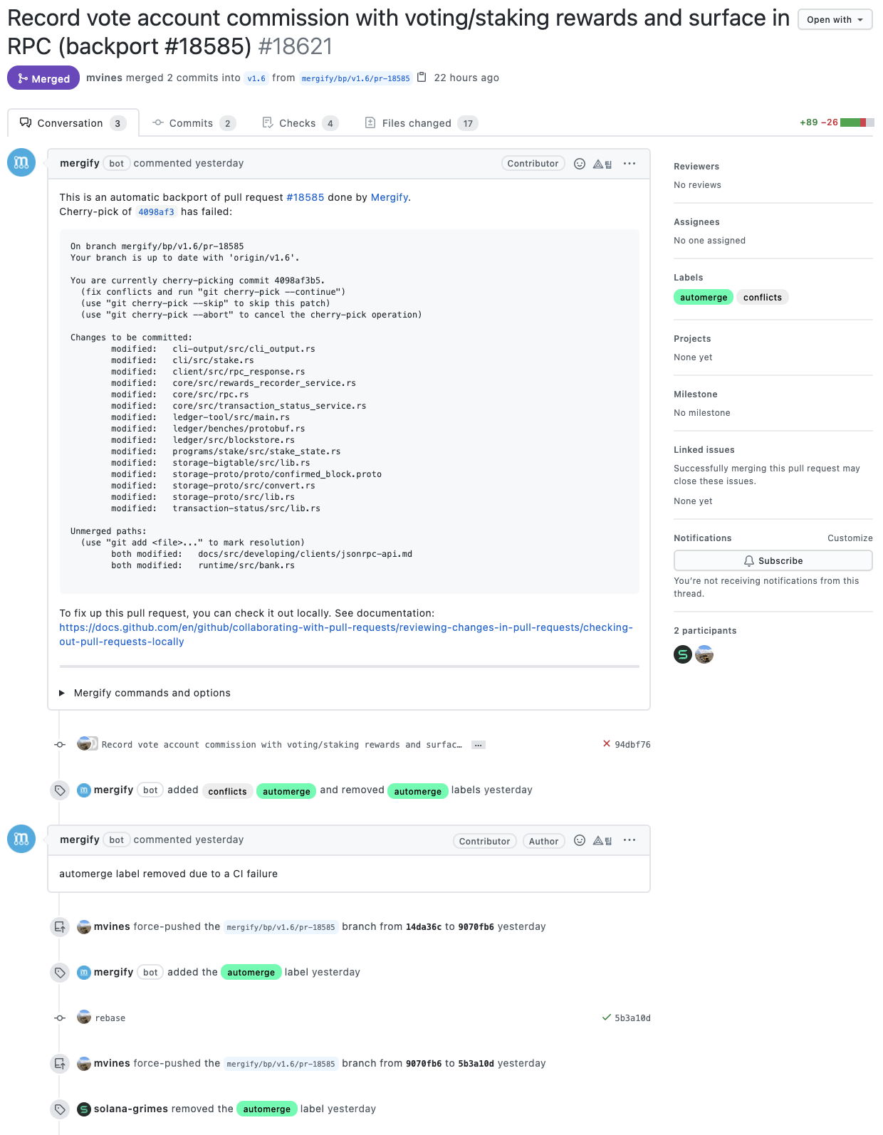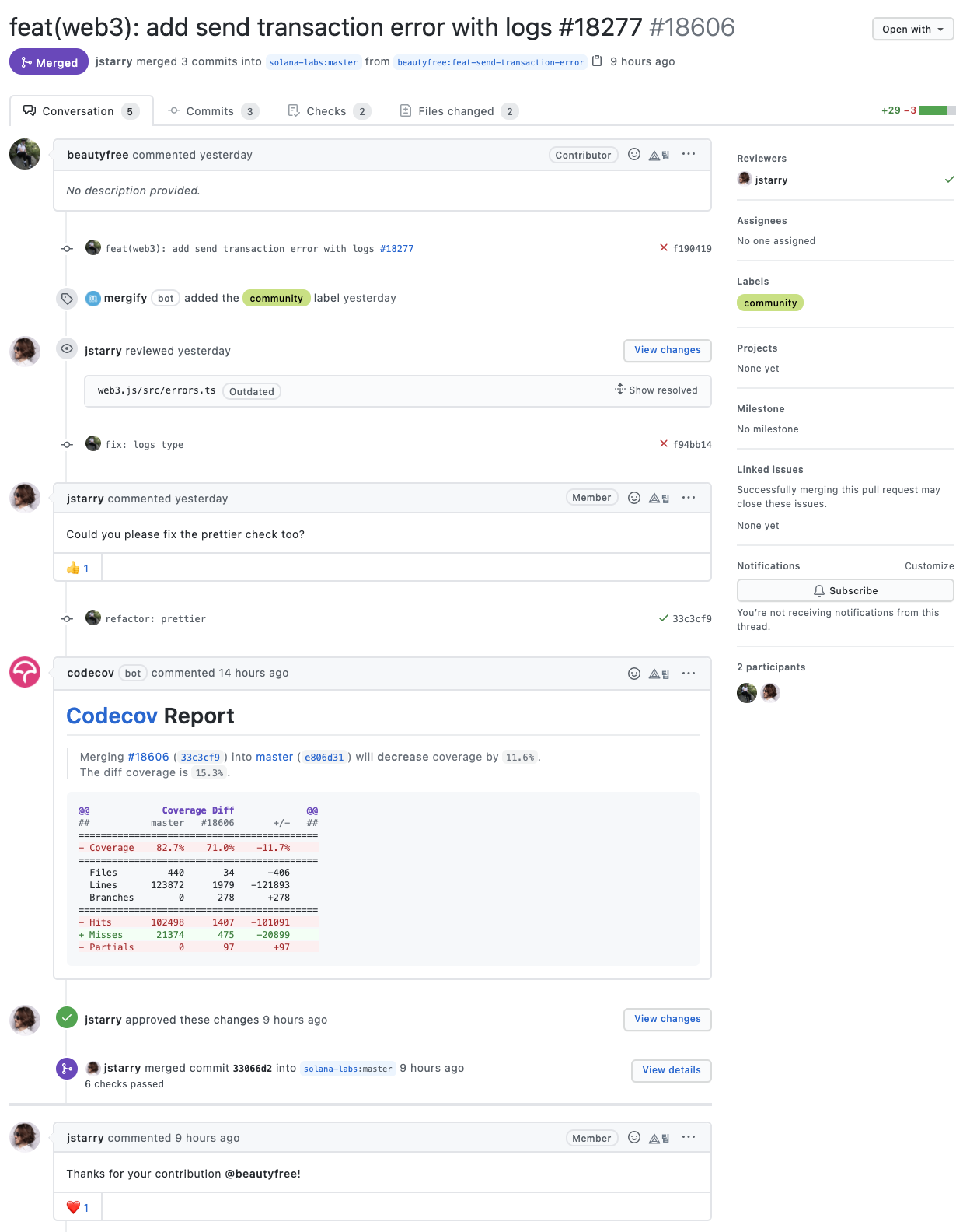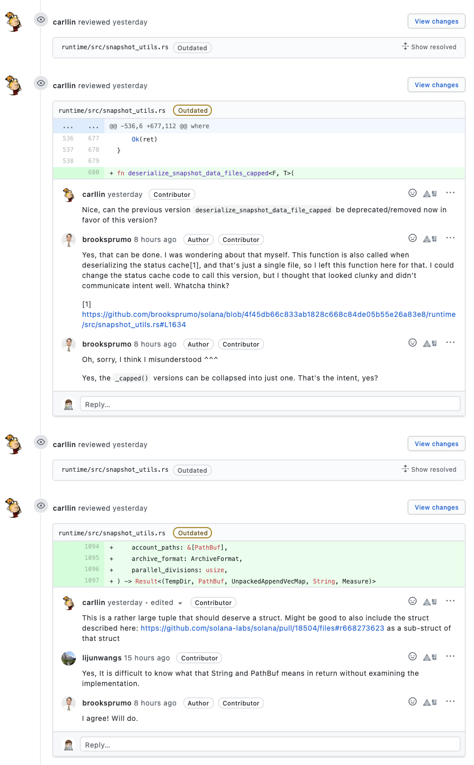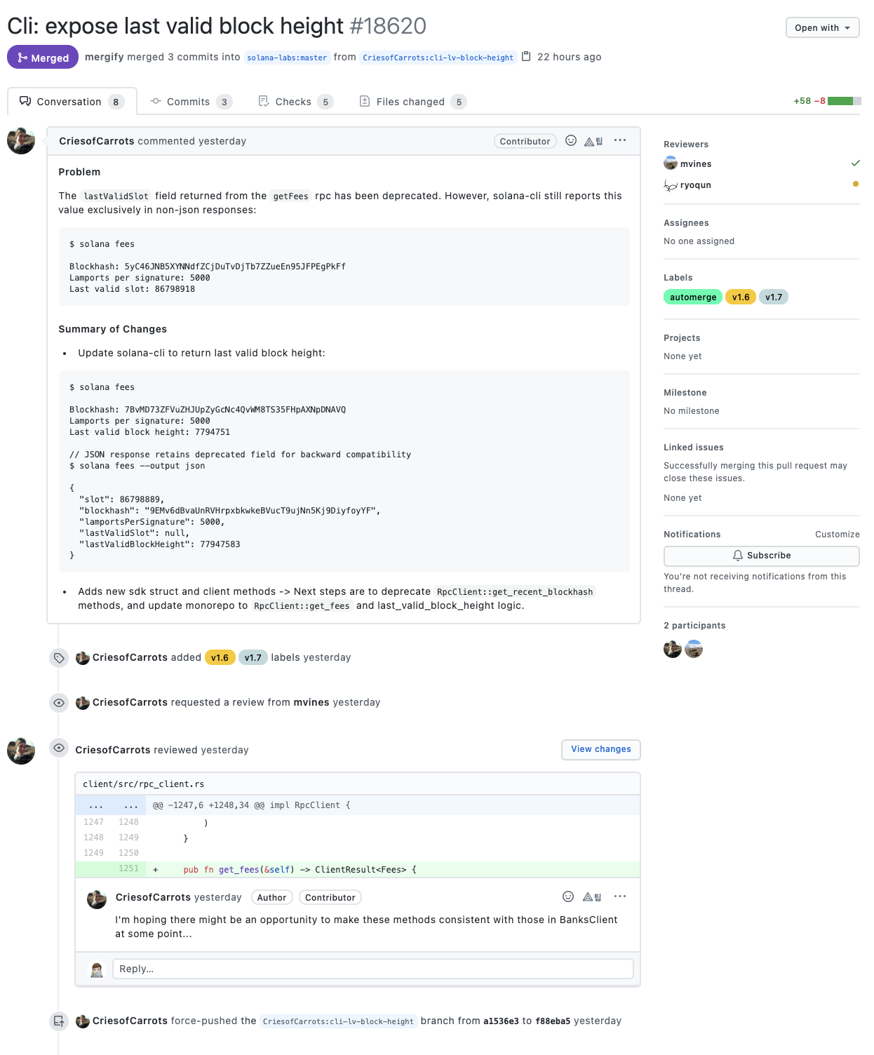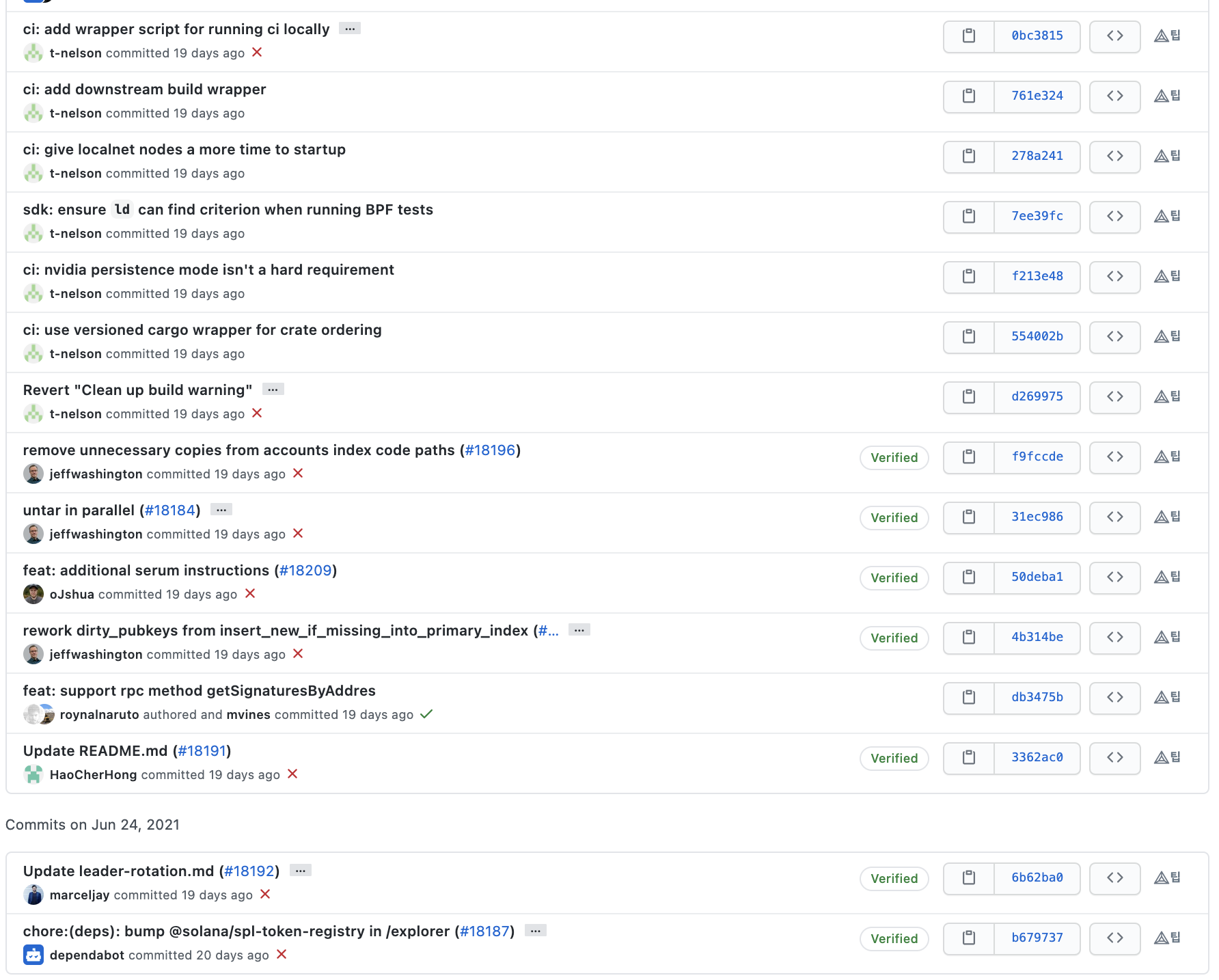 커밋 메시지를 살펴보면 솔라나 개발팀은 메시지를 굉장히 명시적으로 잘 작성해주고 있는 것을 확인할 수 있습니다.