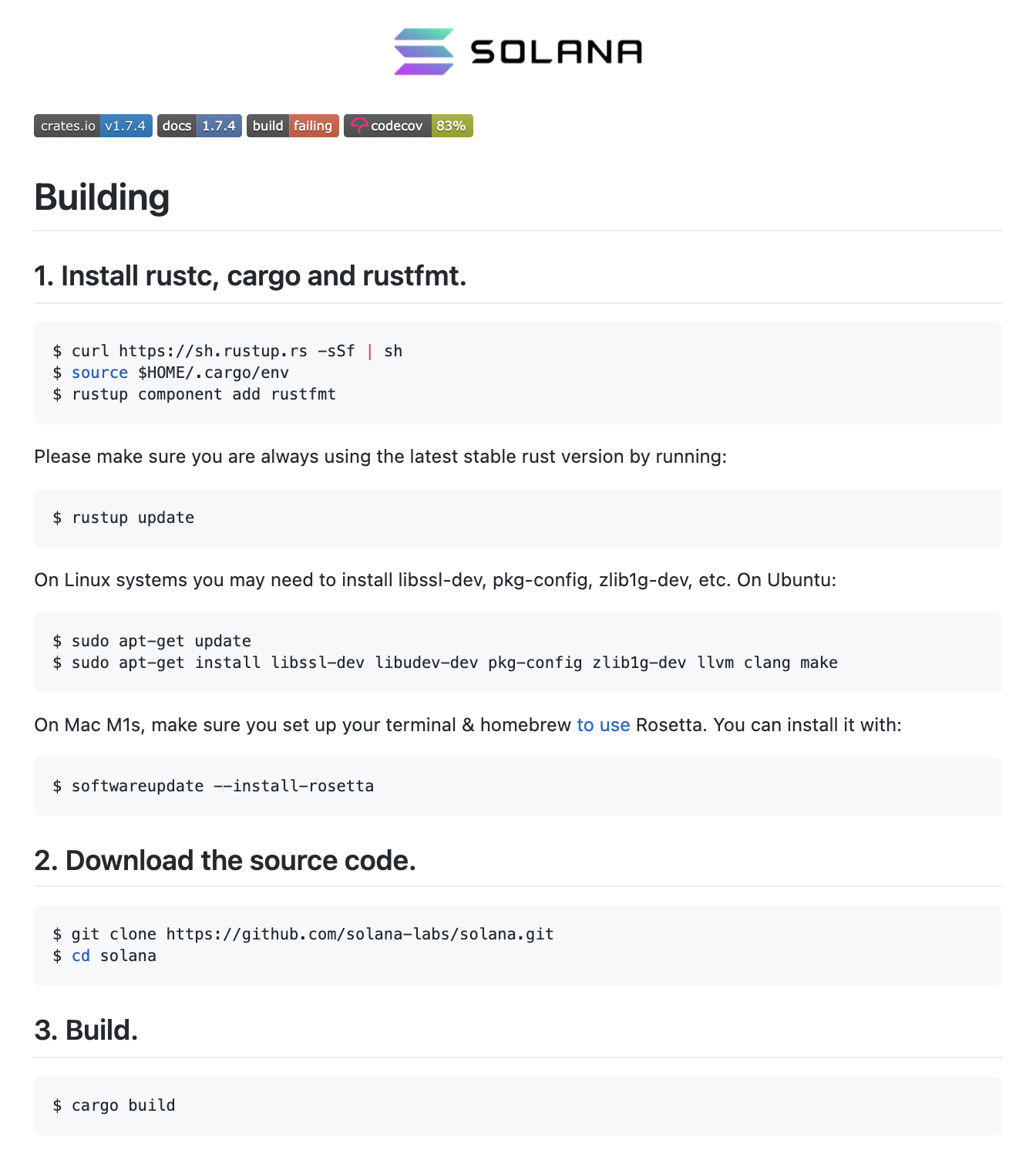 솔라나 코인은 공식 홈페이지에 깃허브 오픈소스 프로젝트 경로를 제공하고 있습니다. (개인적으로 당당하게 자신들이 개발하는 결과물을 오픈소스로 공개하는 곳을 굉장히 좋아합니다. 자신이 개발하고 있는 결과물에 떳떳하다는 것이겠죠. 스캠 취급을 당하지 않으려면 이러한 노력이 필요합니다.)