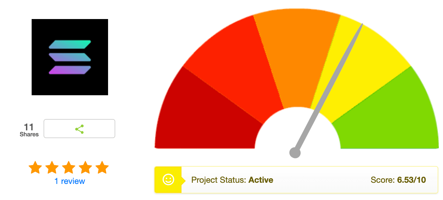 아래 스캠 판별 결과는 참고용으로만 봐주시면 좋을 것 같습니다. 기본적으로 코인 프로젝트에서 필수적으로 가져야할 요소들을 기준으로 스캠 판별을 해주는 사이트입니다. 솔라나 스캠 스코어는 6.53으로 높은 스코어를 보여주고 있습니다.