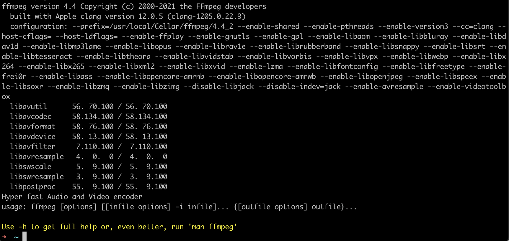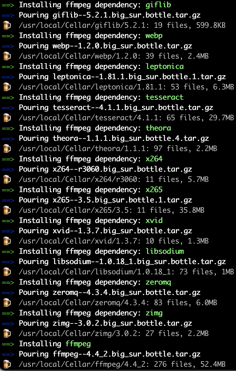 정상적으로 ffmpeg 패키지가 설치된 것을 확인할 수 있습니다.