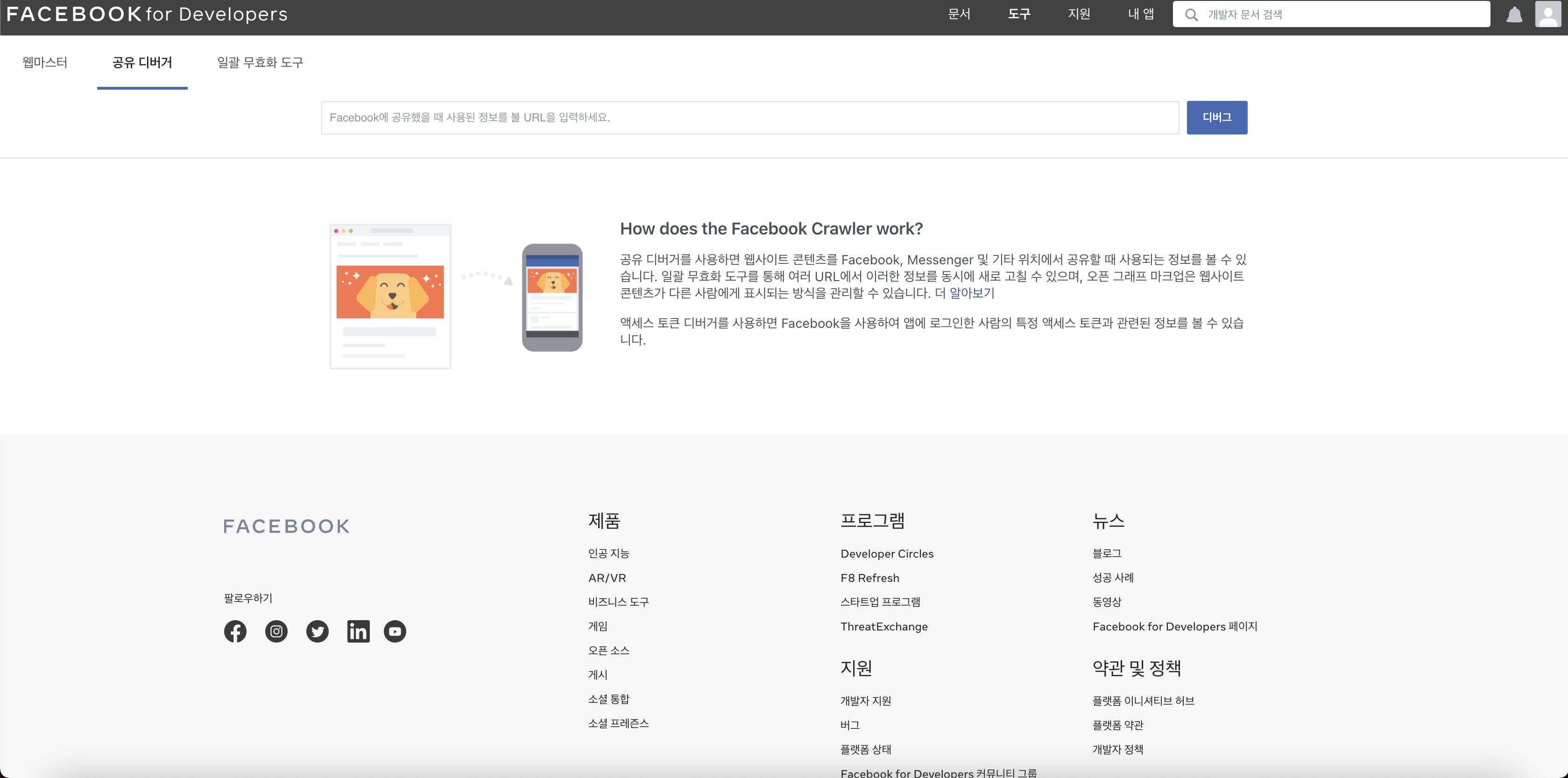 이번 포스팅에서는 페이스북 공유 디버거를 활용해서 데이터 캐시를 삭제하고, 업데이트한 오픈그래프 이미지가 정상적으로 표시되게 하는 방법에 대해서 살펴보겠습니다.