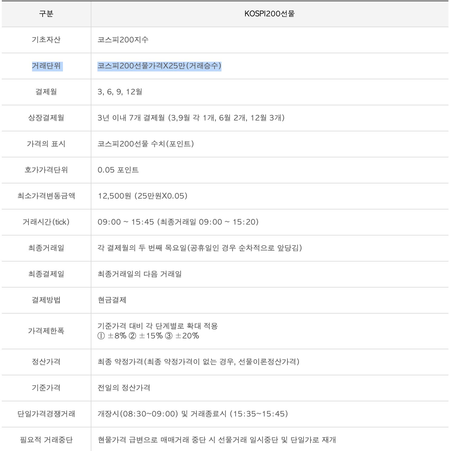 선물 1 계약 가격 = 코스피 200 지수 x 거래승수