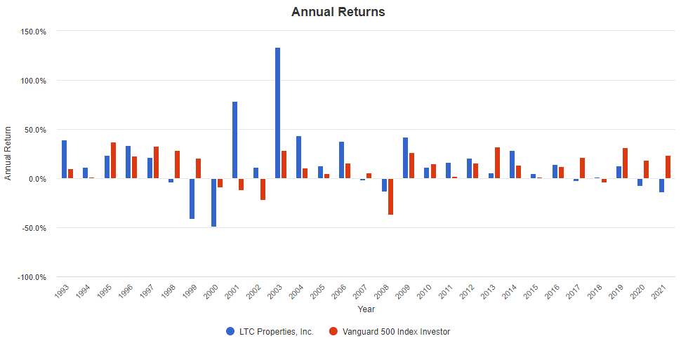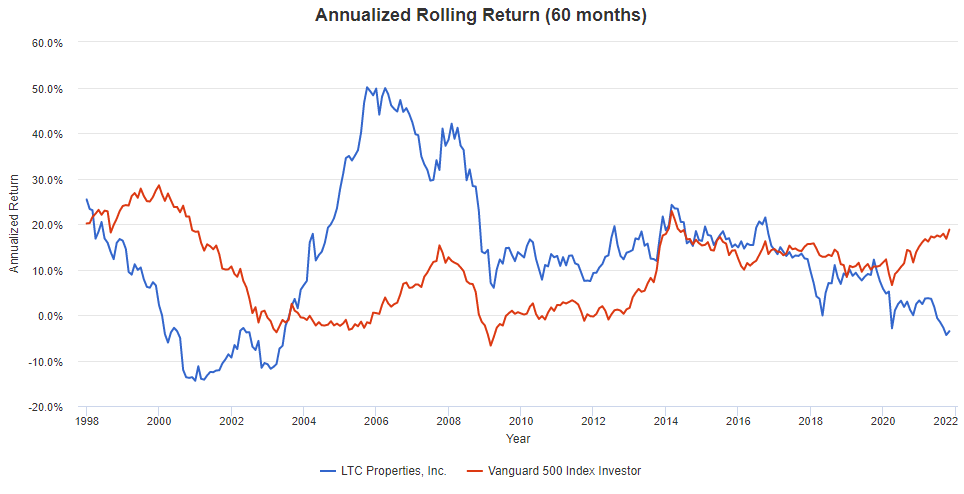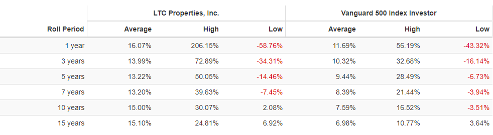 헬스케어 리츠에 대한 장기 전망은 주로 노인 인구의 증가로 인해 낙관적이라고 판단할 수 있습니다. LTC는 지난 10년 동안 새로운 시설에 16억 달러를 투자하여 향후 20년 동안 예상되는 퇴직과 시설에 대비하여 리츠를 준비했습니다.