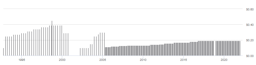 닷컴버블(1999-), 서브프라임 모기지 사태(2008-), 코로나 바이러스(2019-)와 같은 세계 경제에 꽤 큰 타격이 갈만한 이슈가 있었을 때 배당컷이 몇번 발생하긴 했지만 나름 잘 버티고 현재까지 잘 운용하고 있습니다.