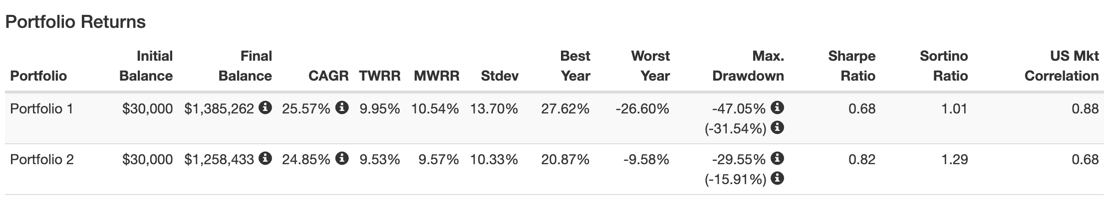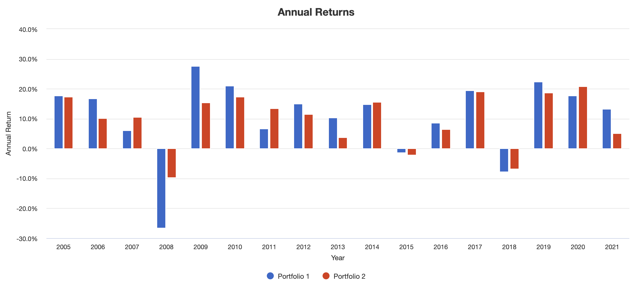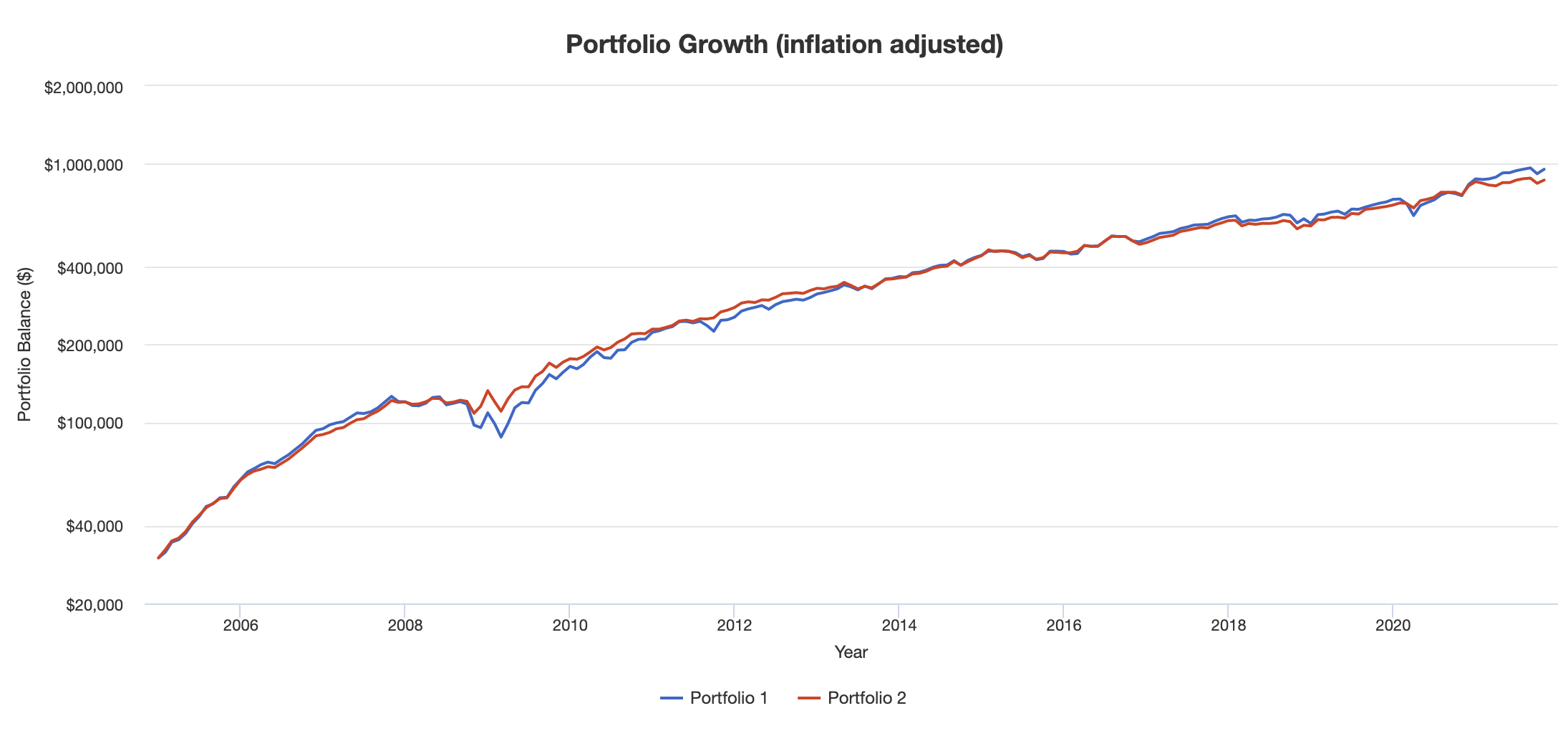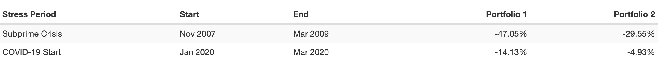 포트폴리오 구성은 아래와 같습니다. Portfolio 1은 개인투자자, Portfolio 2는 연기금입니다.
