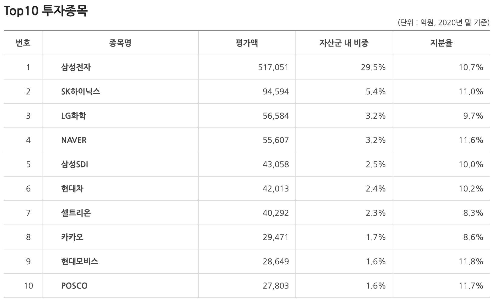 연기금 포트폴리오 살펴보기