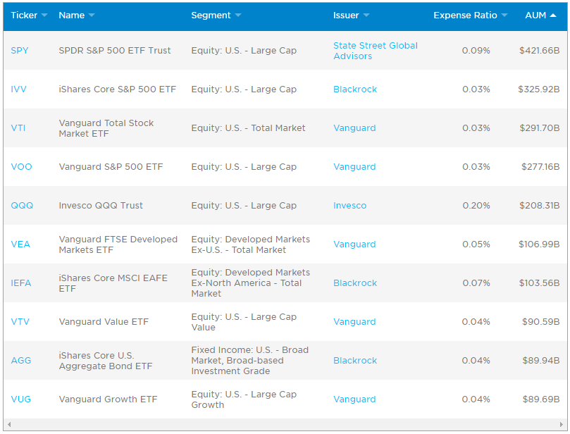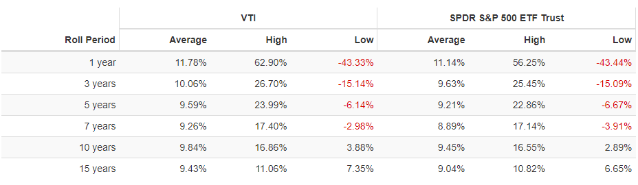 | 이름 | Vanguard Total Stock Market ETF | SPDR S&P 500 ETF Trust |
